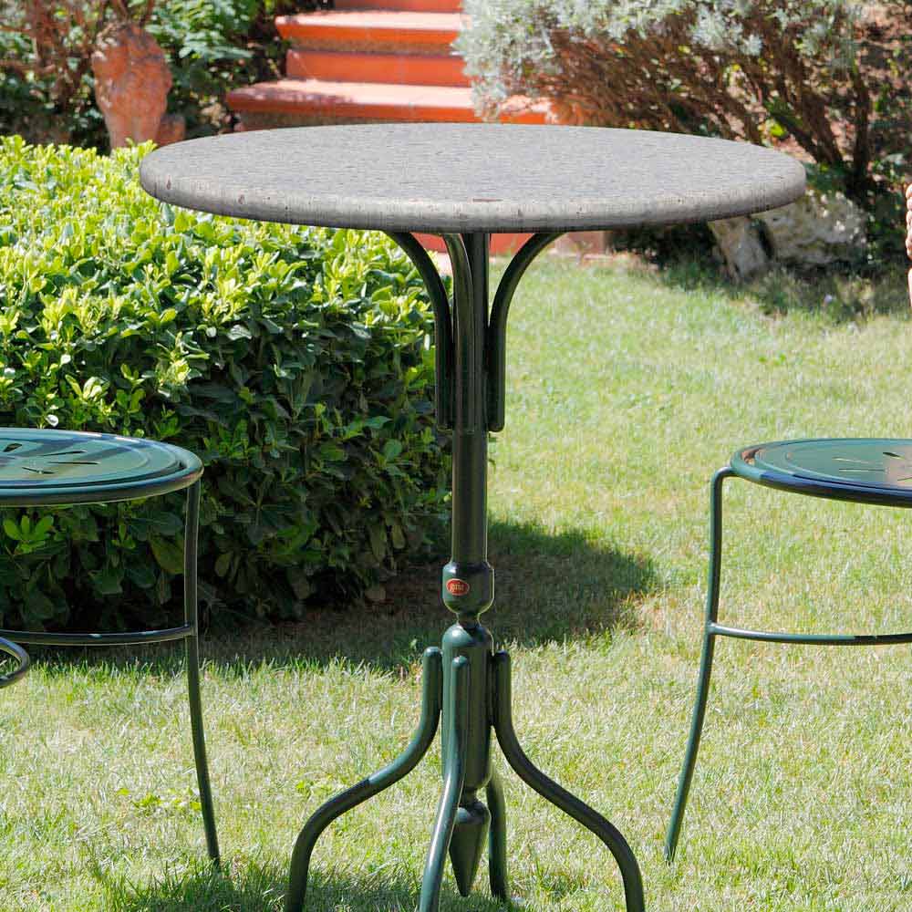 Mesa de centro para exterior hecha a mano en Italia con tapa redonda de piedra y base de hierro pintado de verde. Un complemento de decoración para ambientes de exterior caracterizado por características clásicas que recuerdan un diseño del pasado enriquecido y singularizado por el particular acabado que recubre toda la base, elementos distintivos de la mesa de centro. La encimera de piedra, en cambio, da un toque exclusivo a la vez que aporta una superficie de apoyo sólida y resistente , así como la estructura que, gracias al galvanizado en caliente , garantiza la inoxidabilidad del metal durante décadas y una excelente resistencia a cualquier agente. corrosivo. La artesanía made in Italy también nos permite ofrecer un producto de alta calidad que se destaca gracias al uso de materiales exclusivos , atención al detalle y finos acabados. Nace, por tanto, un producto funcional , duradero y de gran calidad.