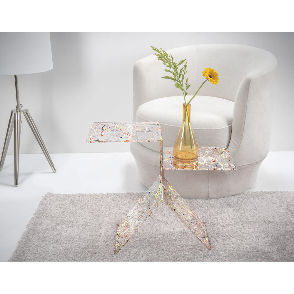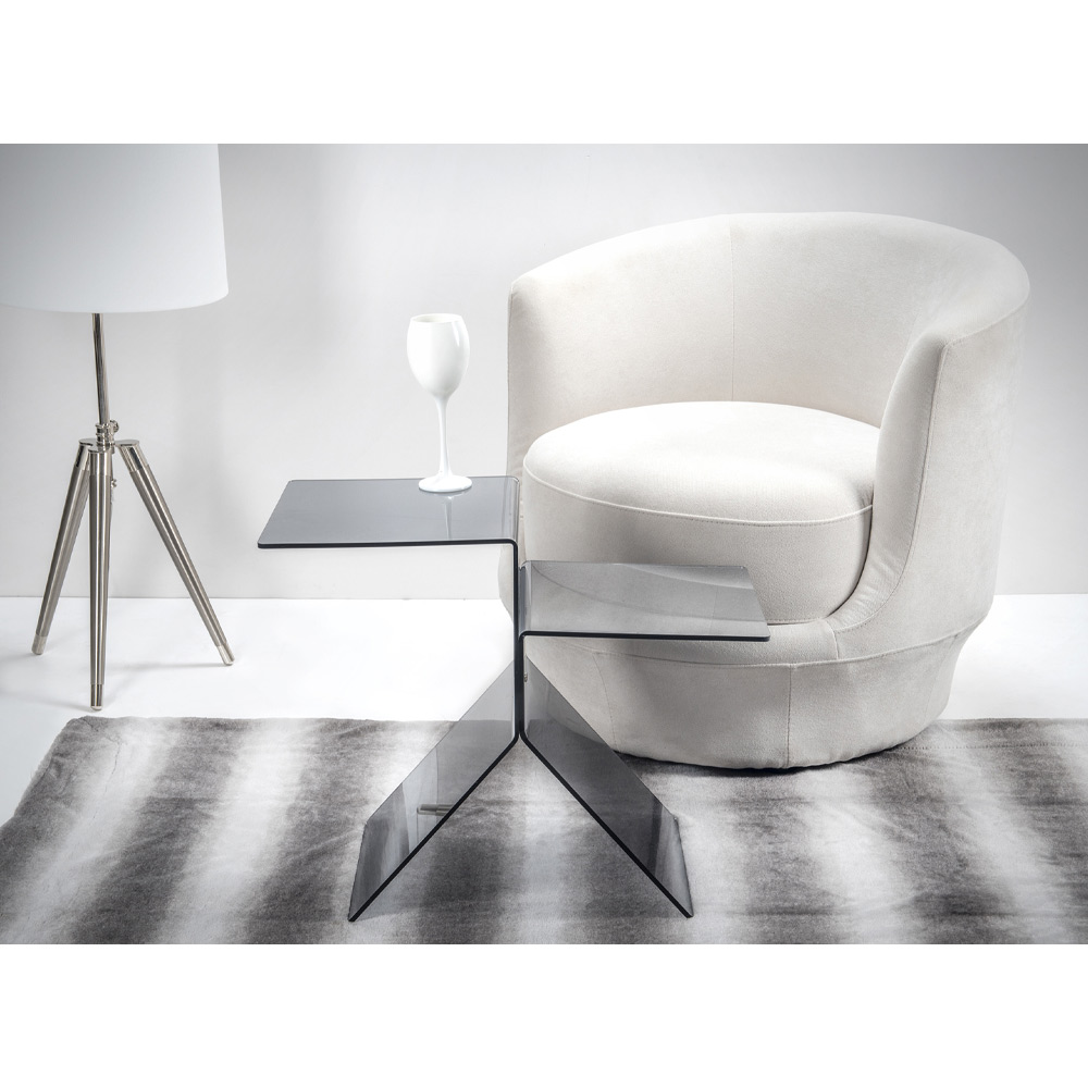 Mesade centro hecha enpolímero virgen puro 100% plexiglás PMMA, un material resistente a los golpes, indeformable, inalterable y termoaislante cuyo brillo y brillo se mantienen constantes e inalterables a lo largo del tiempo. Resistente, elegante y refinado, este complemento está enteramente concebido, diseñado y fabricado en Italia , con materiales italianos.