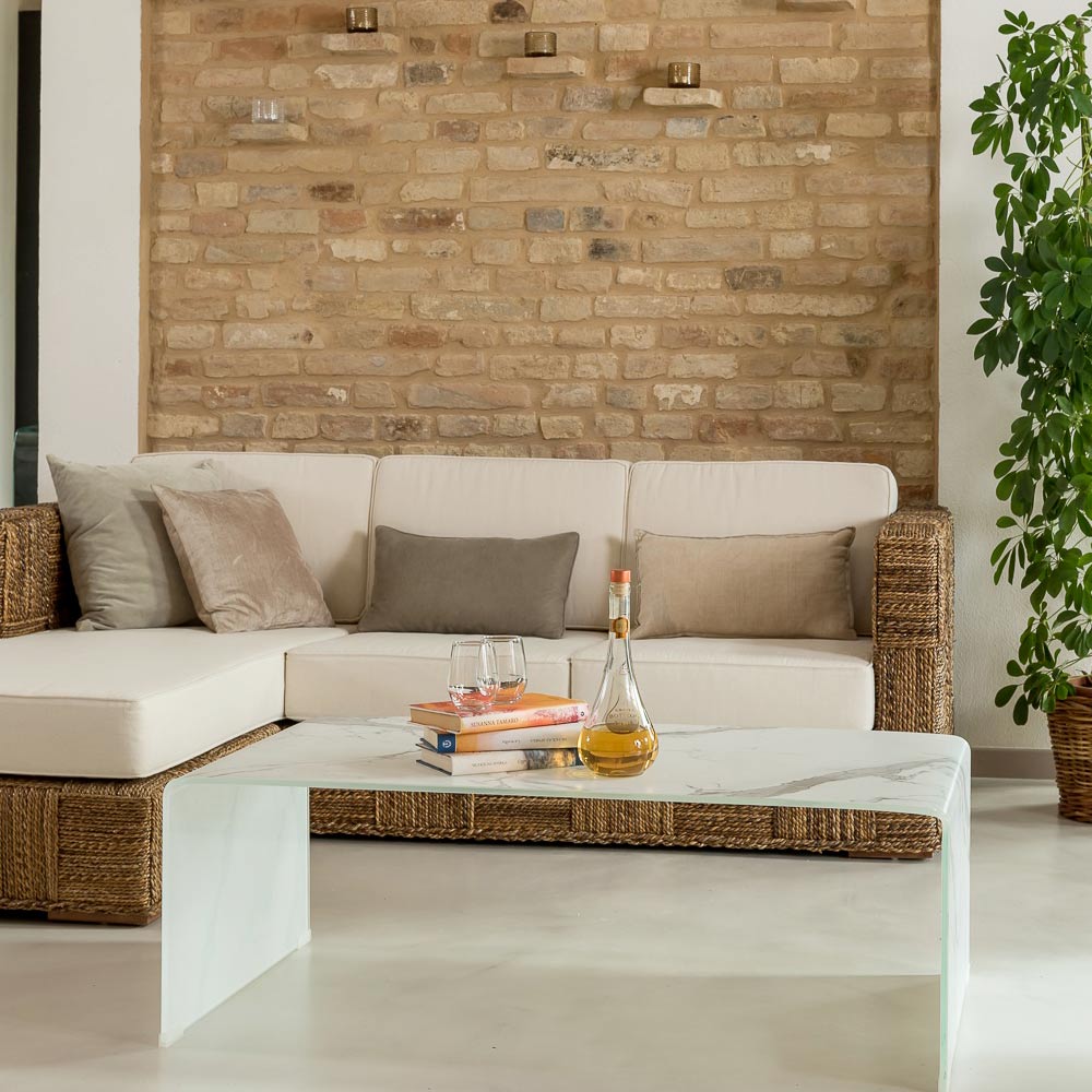 Esta elegante y contemporánea mesa de centro está fabricada en vidrio templado curvado de 10 mm con un refinado acabado efecto mármol , que aporta a la estancia un aspecto luminoso y sofisticado. Su forma sencilla y estructura monolítica realzan sus líneas limpias.