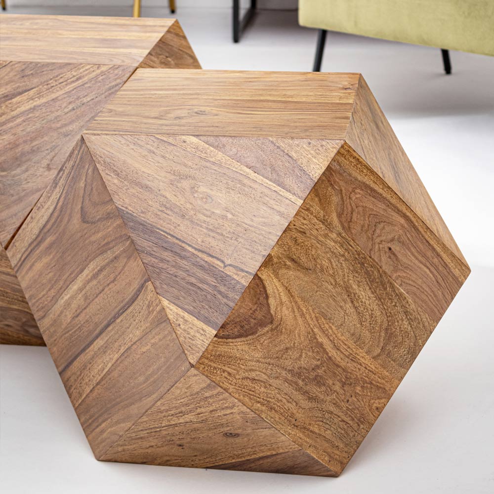 Mesa de centro para salón con diseño poligonal en madera de sheesham.