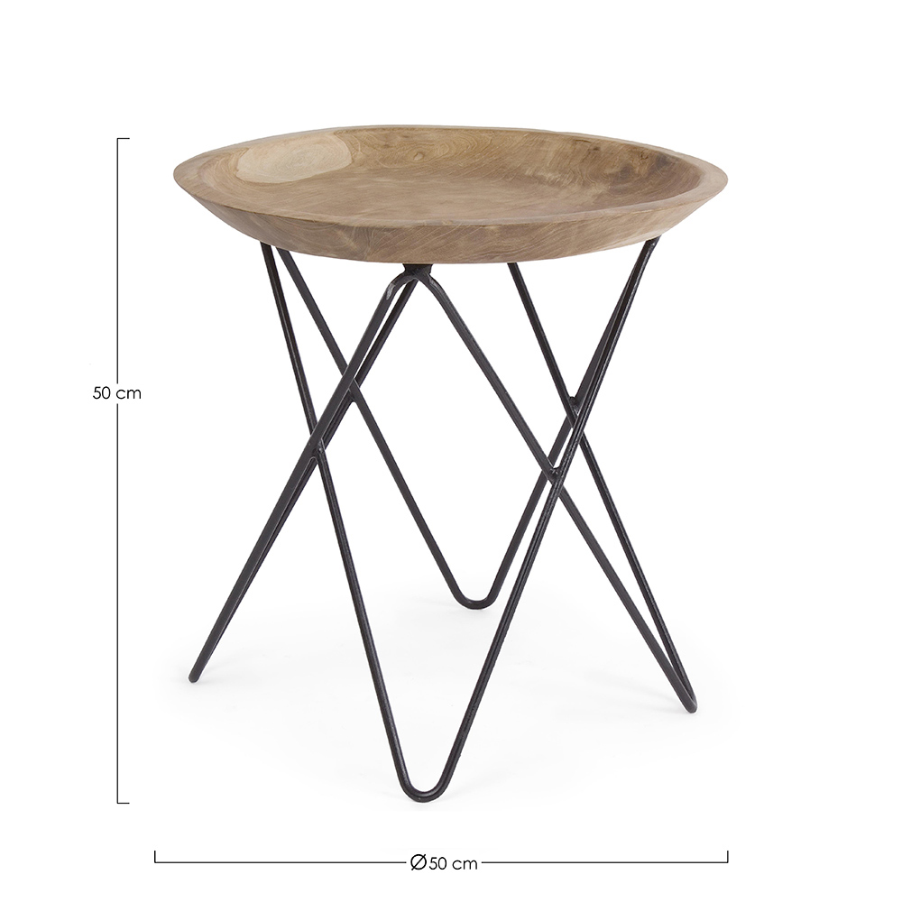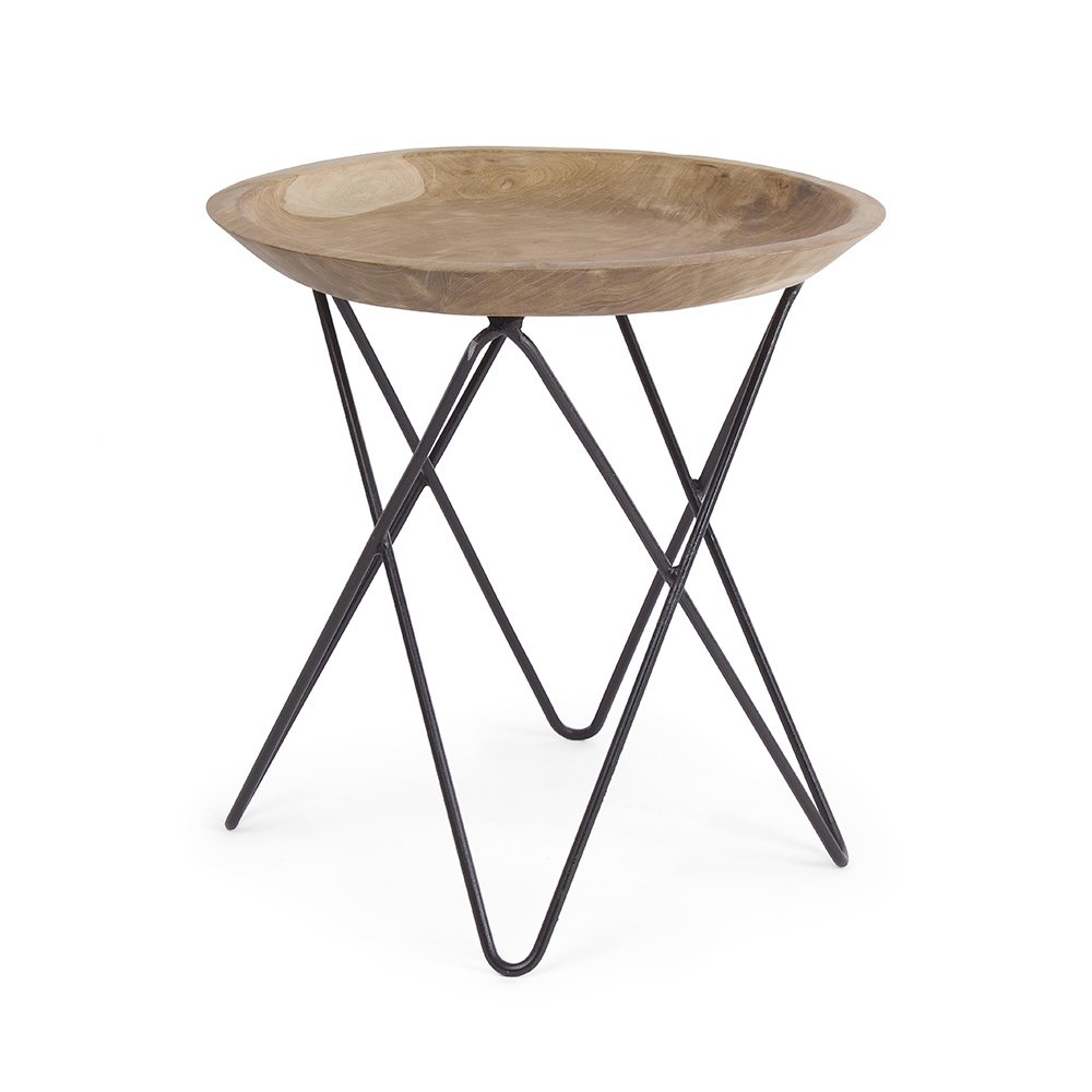 Mesa de centro en acero y tapa en madera de teca de diseño industrial.