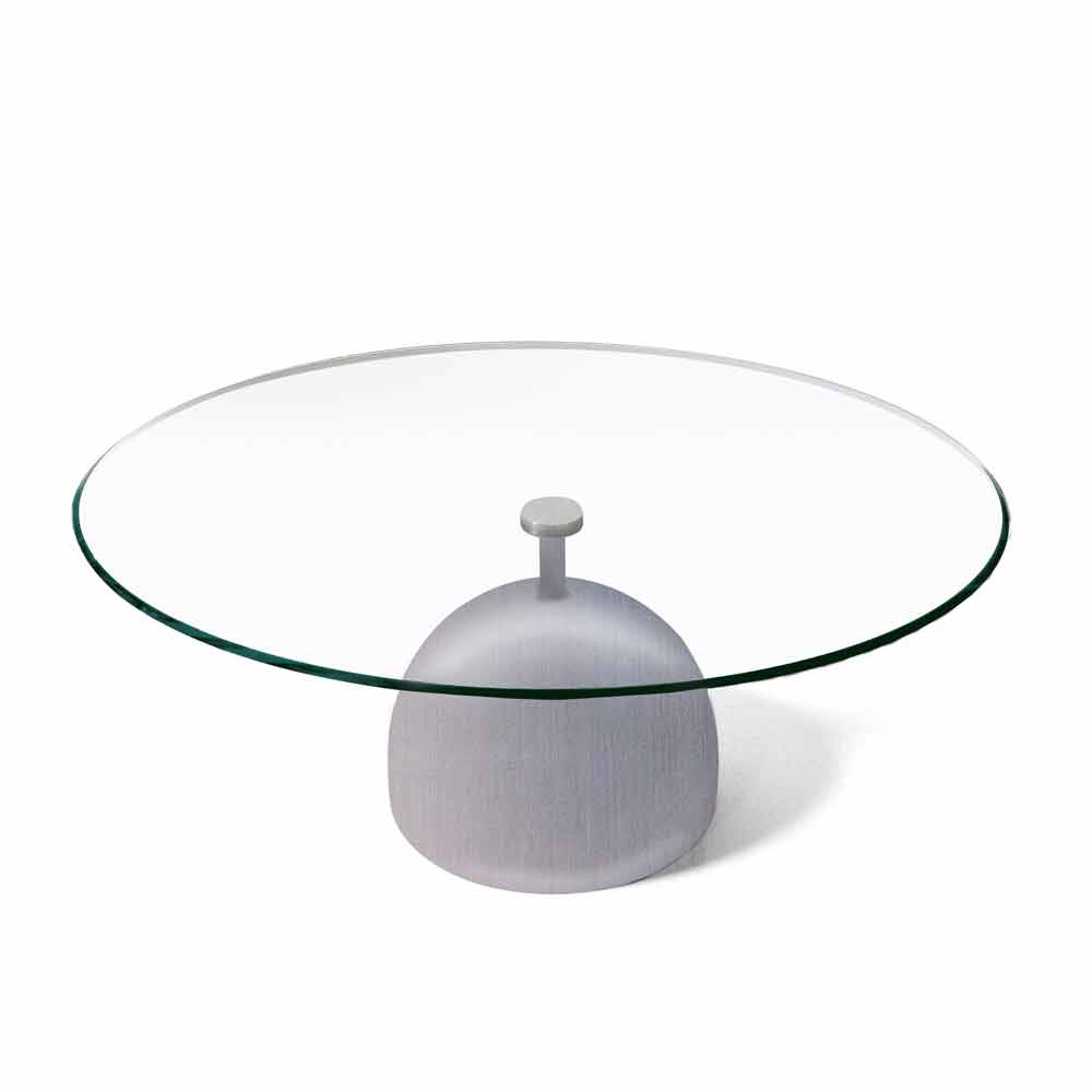 Mesa de centro de cristal extraclaro y metal fabricada en Italia.