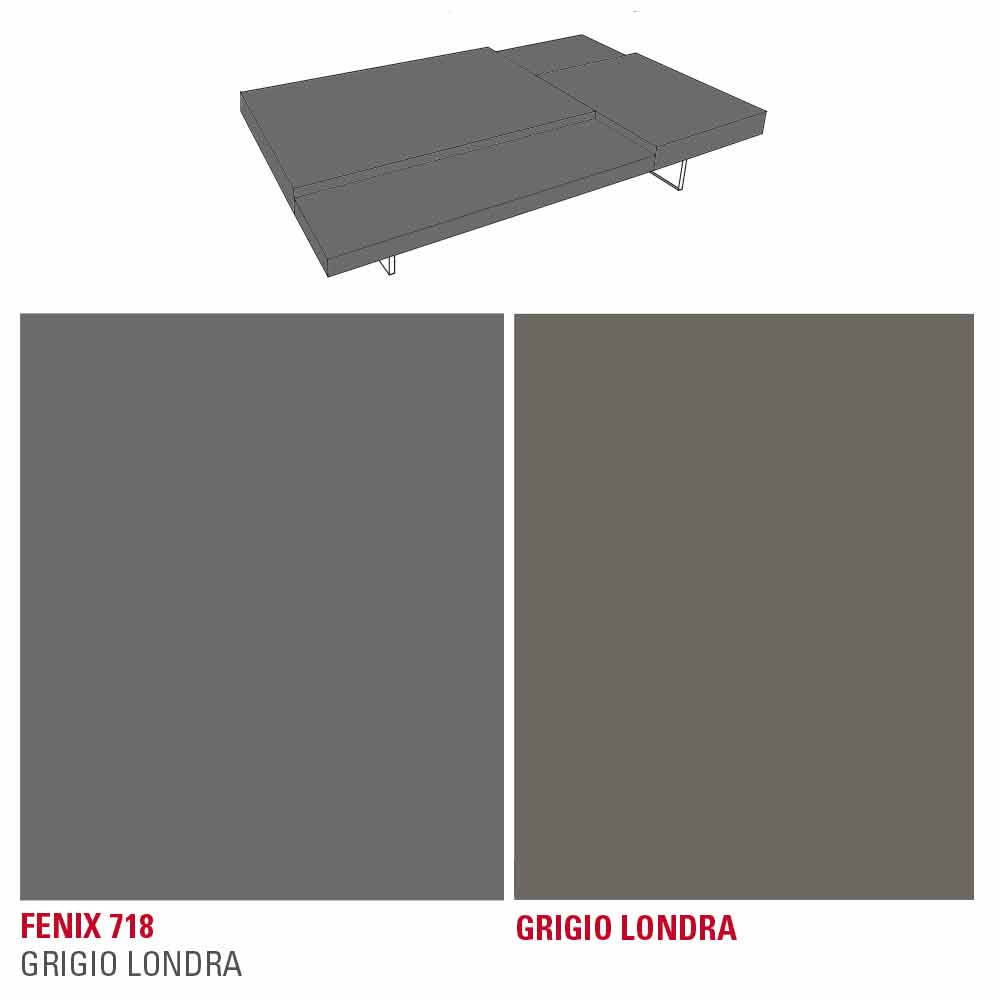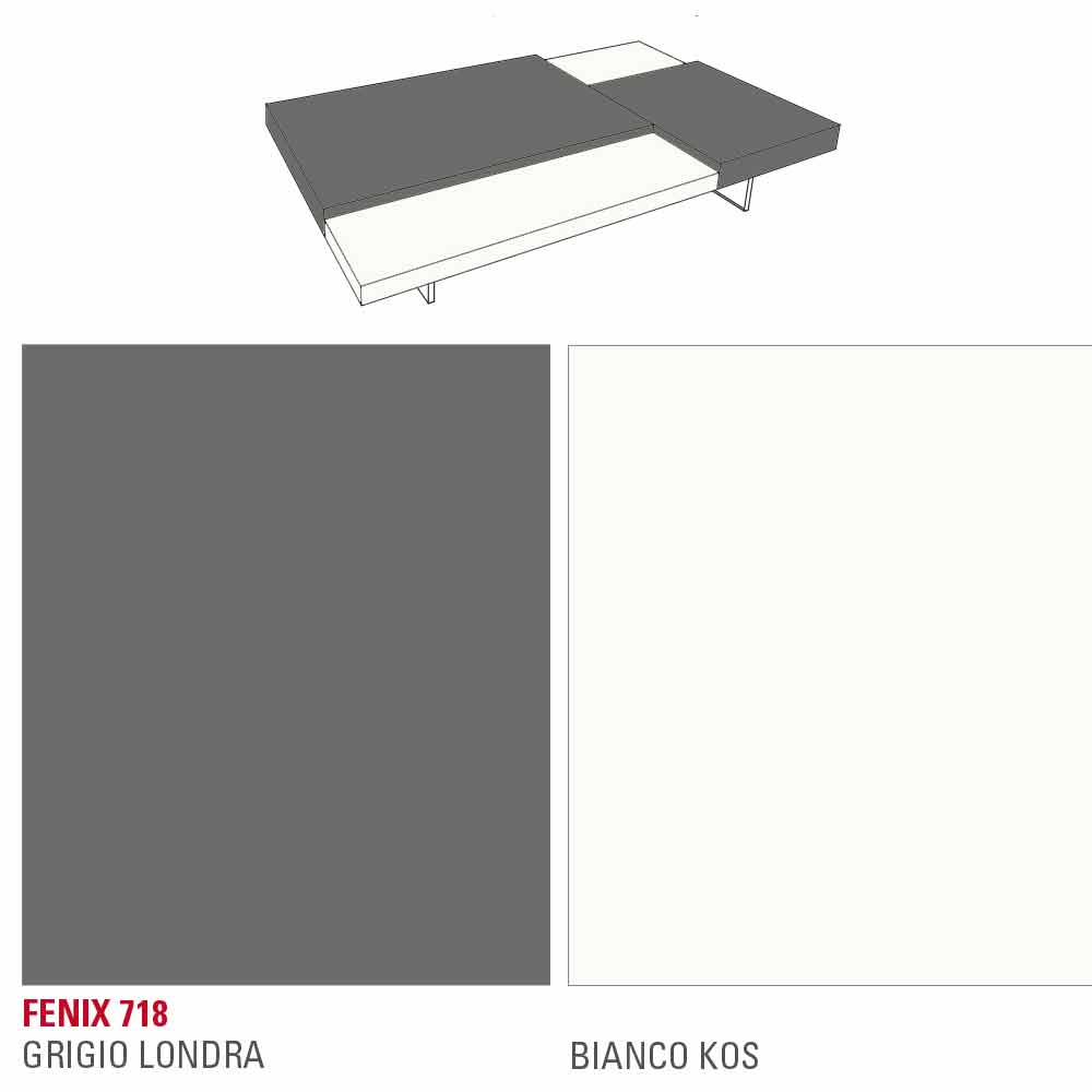 Mesa de centro con tapas de hpl y tapas revestidas de fenix apoyadas en un panel de melamina y pies de polimetilmetacrilato transparente . En cualquier salón es imprescindible la presencia de una mesa de centro que, además de representar una superficie de apoyo práctica y funcional, da armonía al mobiliario y completa su estética gracias a líneas y formas cautivadoras y originales. Este mueble reúne todas las características fundamentales de una mesa de centro perfecta, demostrando ser una excelente idea para quienes aman decorar sus espacios con elementos con un estilo sencillo pero impactante. La forma particular de las tapas colocadas a diferentes alturas juega un papel importante en el diseño del producto ya que ofrece un exclusivo juego de contrastes. Además, la mano de obra 100% Made in Italy y el uso de materias primas como el fenix conducen a la creación de un producto particularmente resistente , agradable al tacto y extremadamente opaco .
