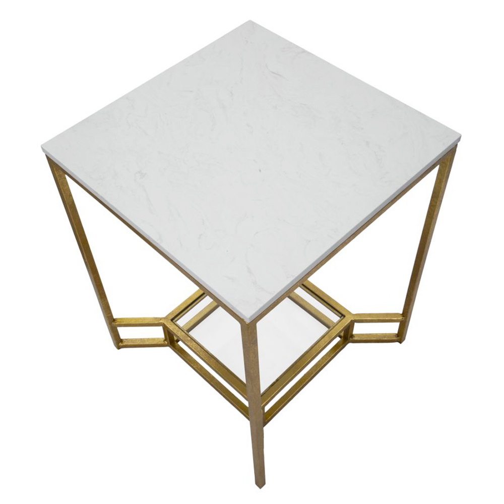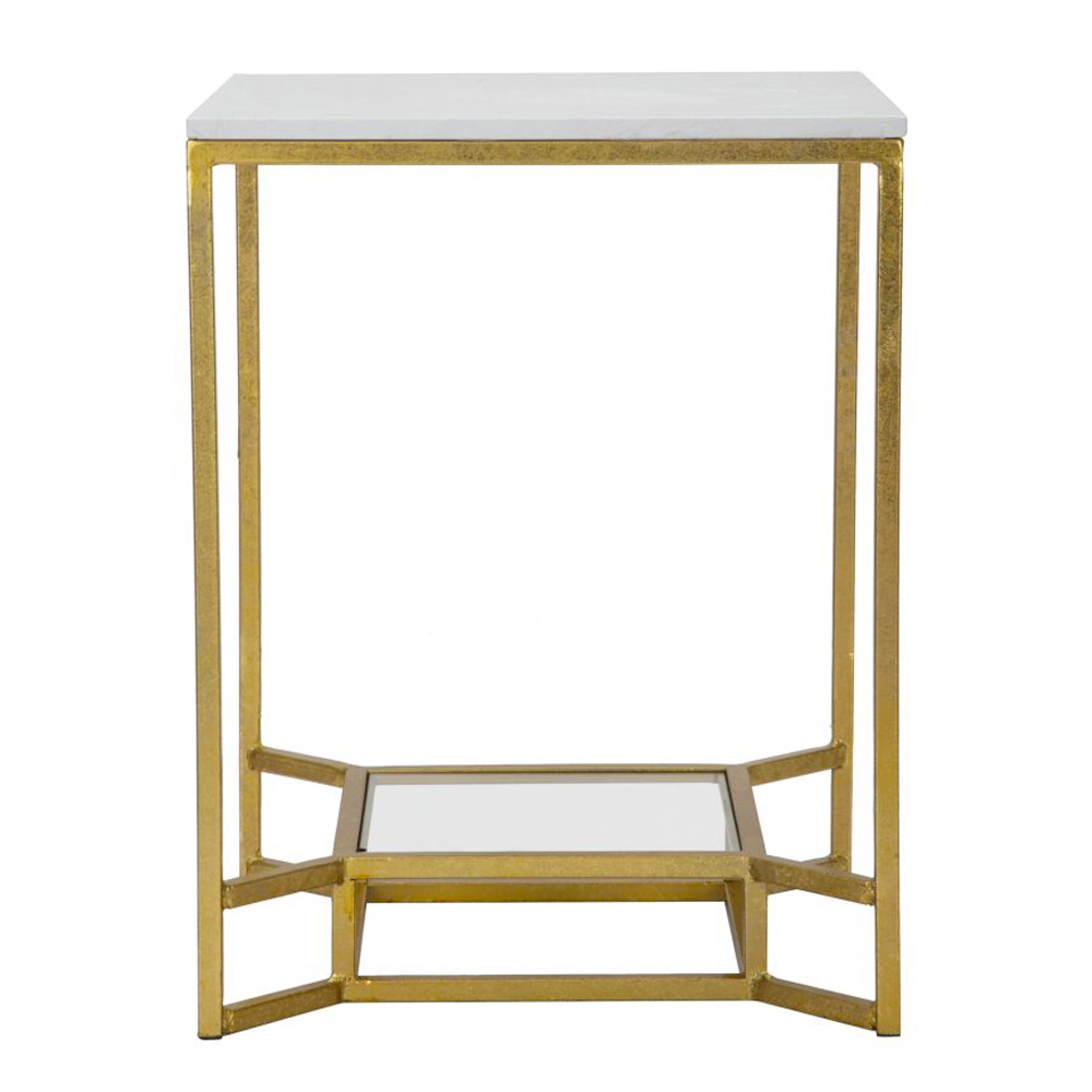 Mesa de centro con estructura de hierro acabado dorado enriquecida por un inserto de vidrio y tapa de resina efecto mármol blanco . Un complemento que combina elegancia y funcionalidad para un resultado óptimo capaz de actuar como una práctica superficie de apoyo y al mismo tiempo como un original elemento decorativo para el salón. Su diseño está marcado por líneas geométricas simples que lo hacen particularmente versátil y por lo tanto ideal para completar salones con un estilo refinado para un mobiliario exclusivo, refinado y con personalidad.