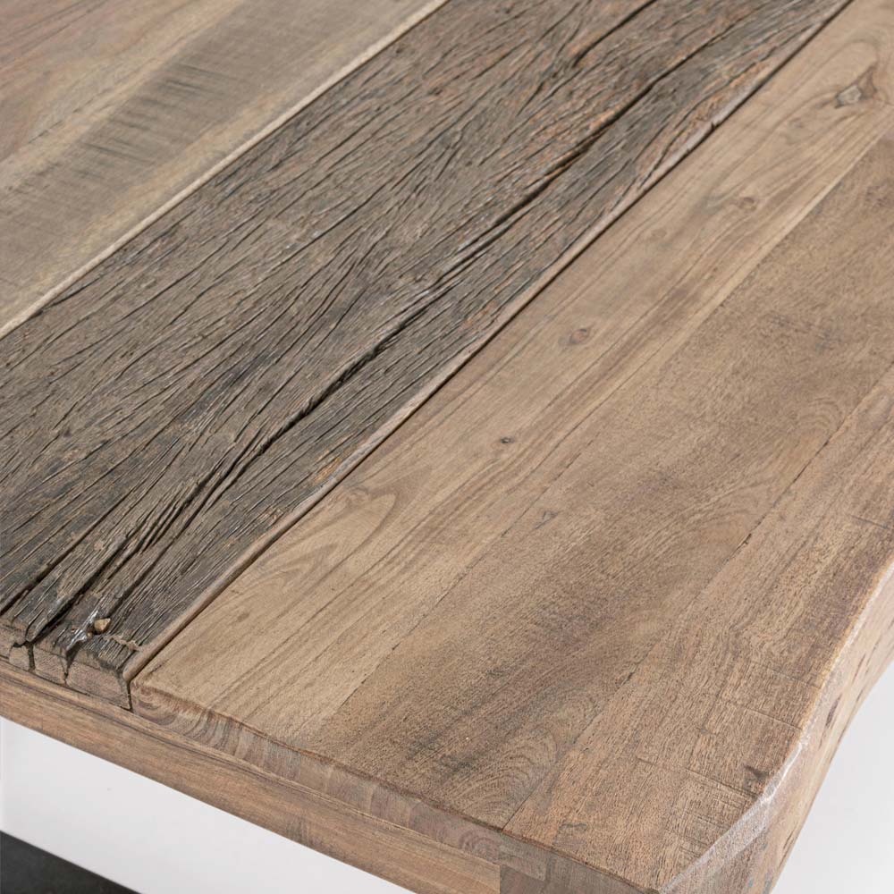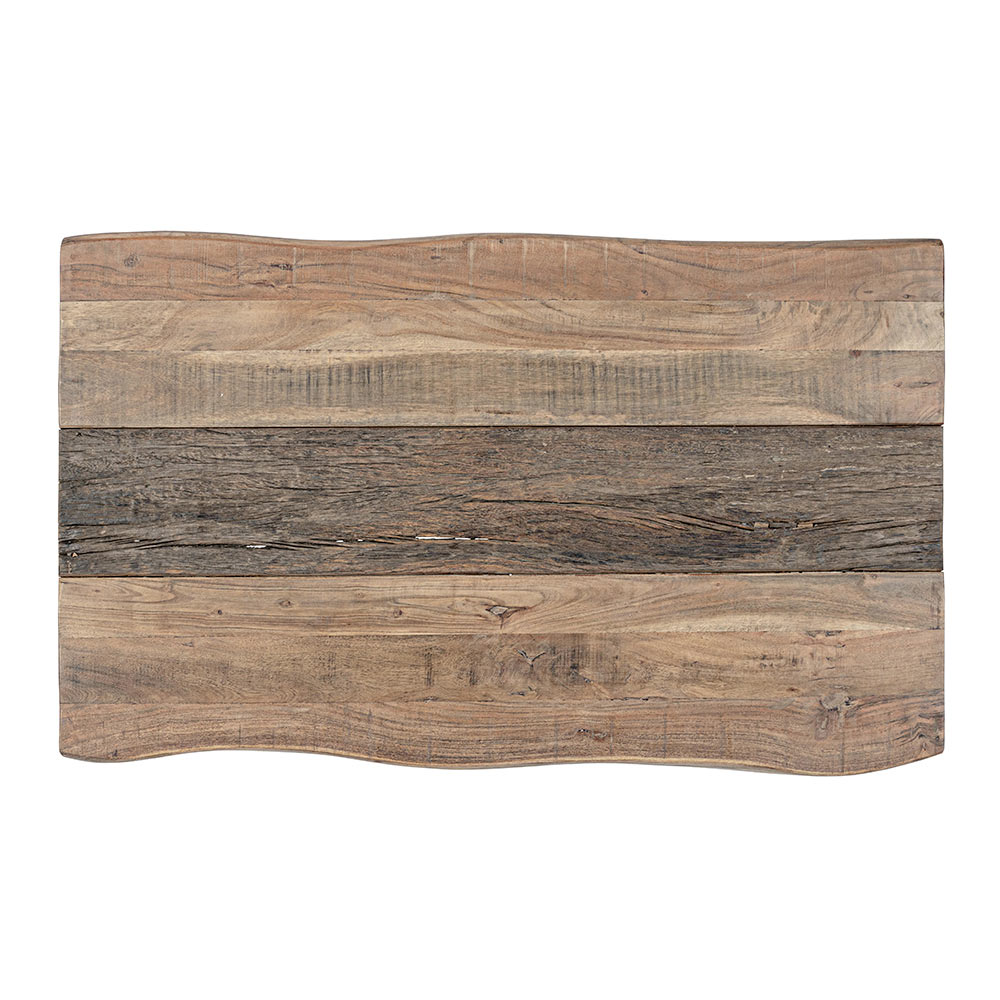 Mesa de centro en acero y tapa de madera de acacia con inserto reciclado.