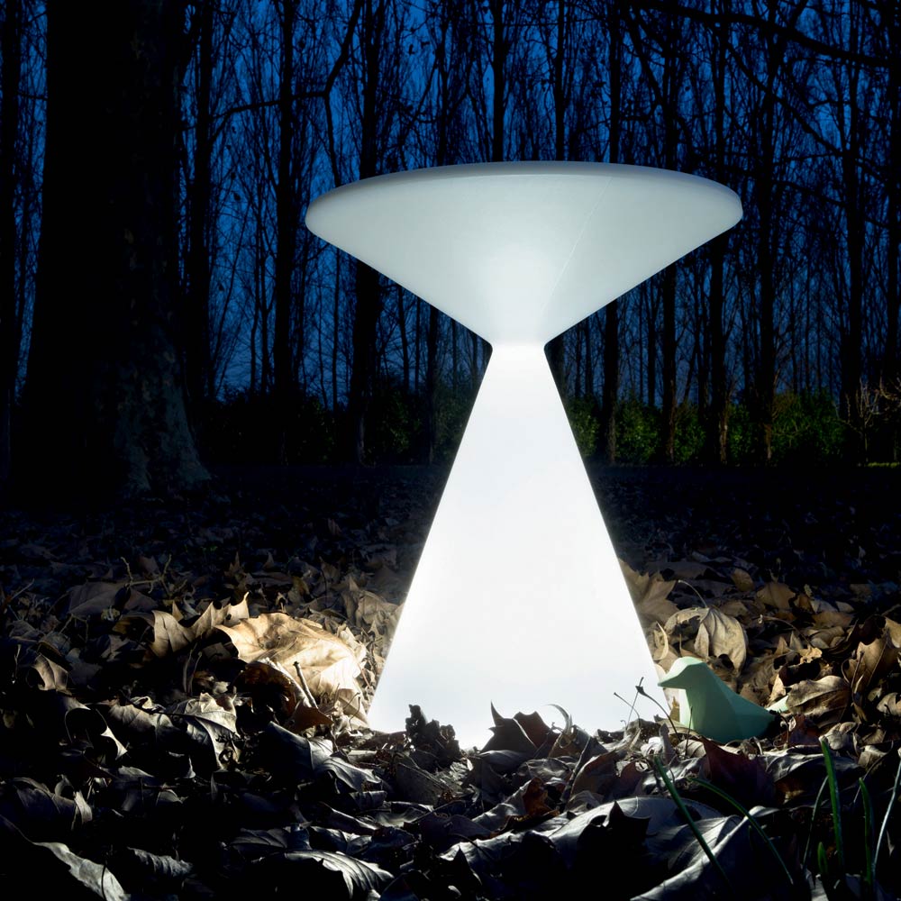 Mesa de luz redonda para exterior en polietileno y contenedor interior made in Italy.