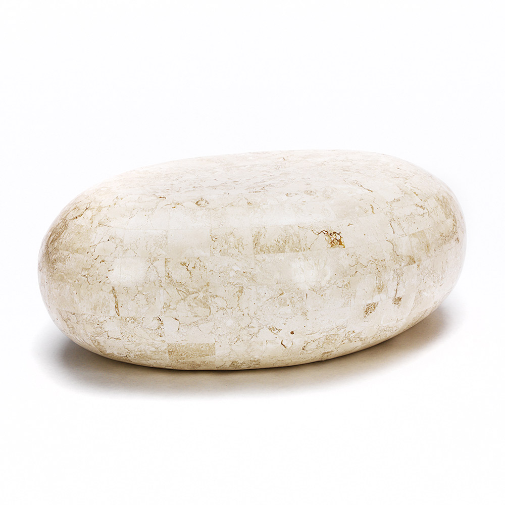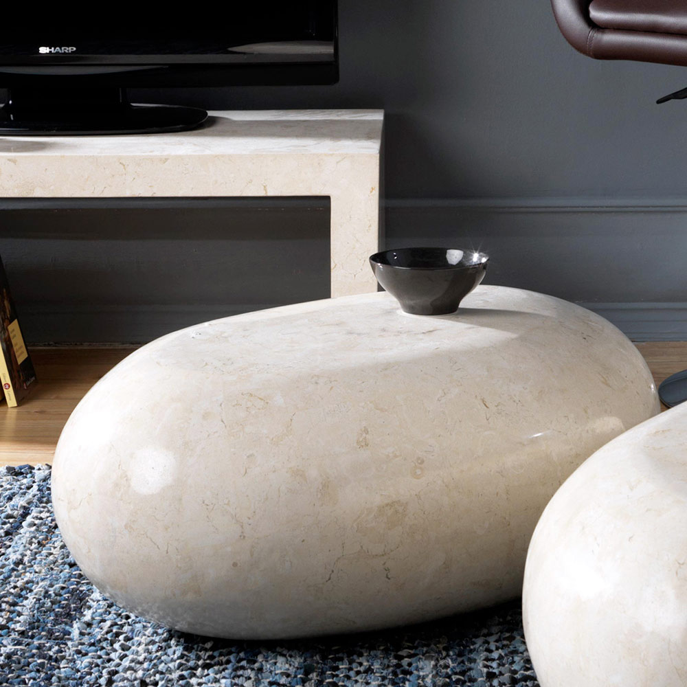 Mesa de centro realizada con un bloque romboidal de piedra fósil. Tiene un diseño único, sencillo y esencial, perfecto para decorar ambientes tanto clásicos como modernos. Alfred está disponible en acabado ágata blanca .