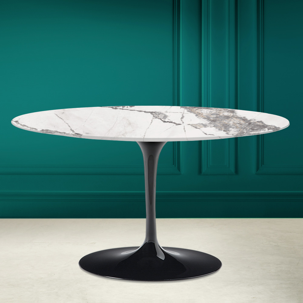 Mesa de centro íntegramente fabricada en Italia con tapa ovalada de cerámica selecta invisible, efecto mármol estatuario mate y base de aluminio pulido . Este producto tiene dos características que lo hacen único e inolvidable: la cerámica selecta invisible y la forma ovalada. La unión entre estos dos da vida a un elemento contemporáneo, vivo y moderno adecuado para completar el mobiliario de cualquier ambiente de vida con elegancia y refinamiento . Los materiales de construcción garantizan gran calidad y resistencia en el tiempo, dotando a la mesa de todos los elementos para ser práctica y funcional para cada situación y ocasión de uso.