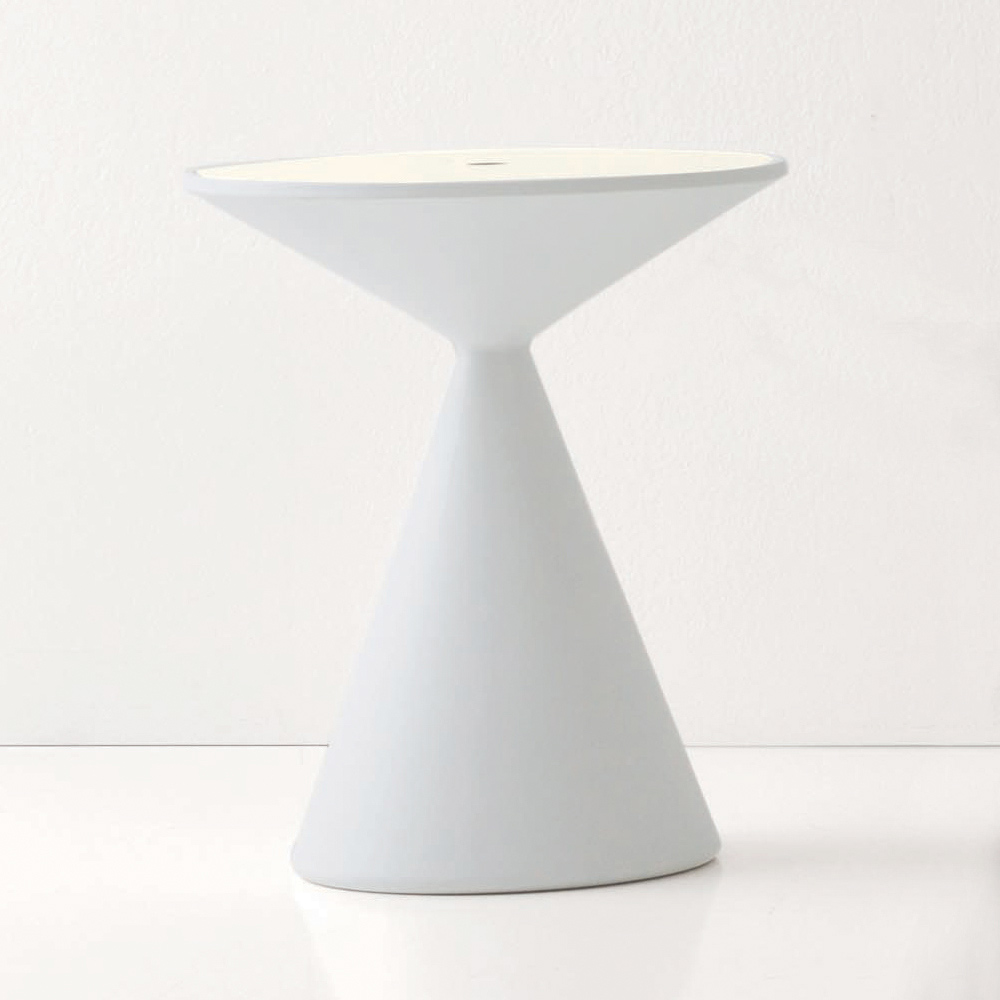 Mesa de exterior redonda en polietileno de color con contenedor interno fabricada en Italia.
