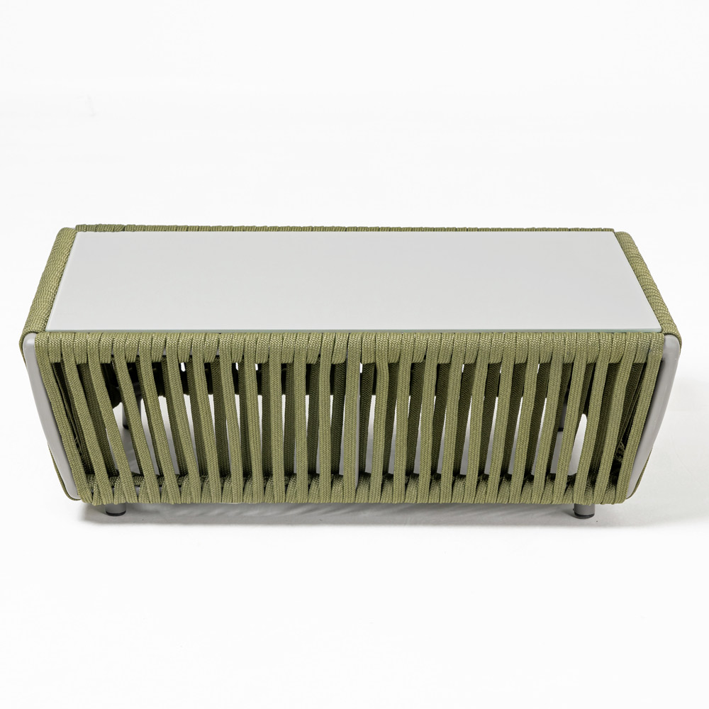 Esta mesa de centro es fácil de manejar y resistente pero al mismo tiempo mantiene un diseño limpio y esencial. Su estilo moderno le confiere un fuerte carácter que la hace perfecta para amueblar espacios exteriores tanto en entornos privados como contract.