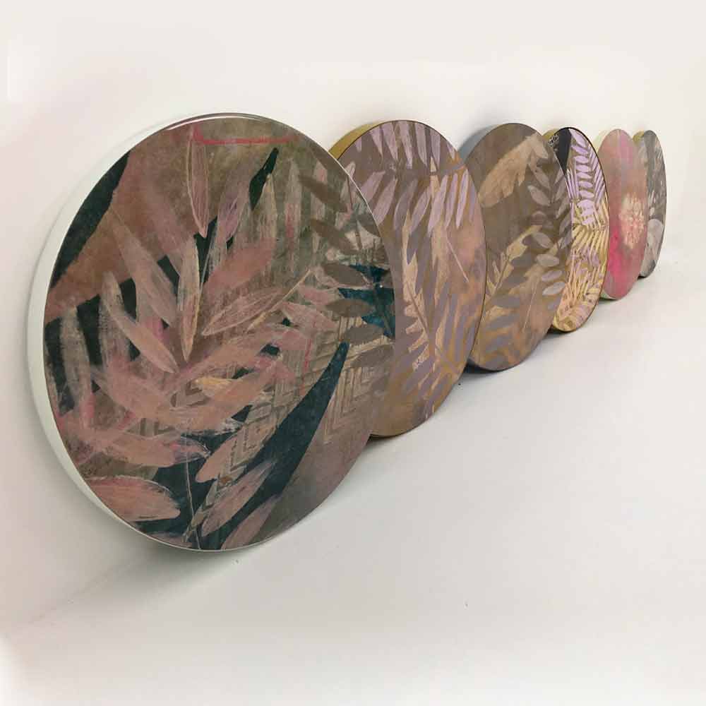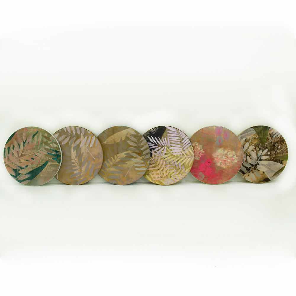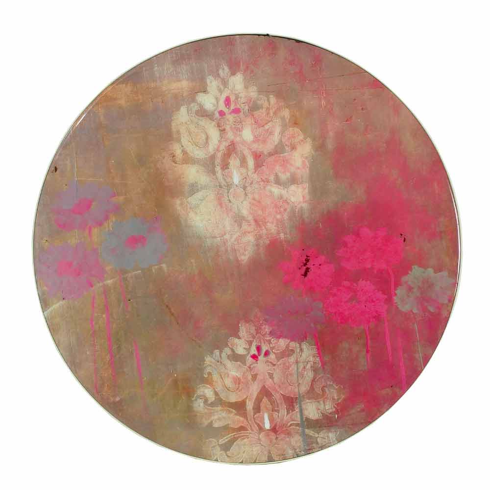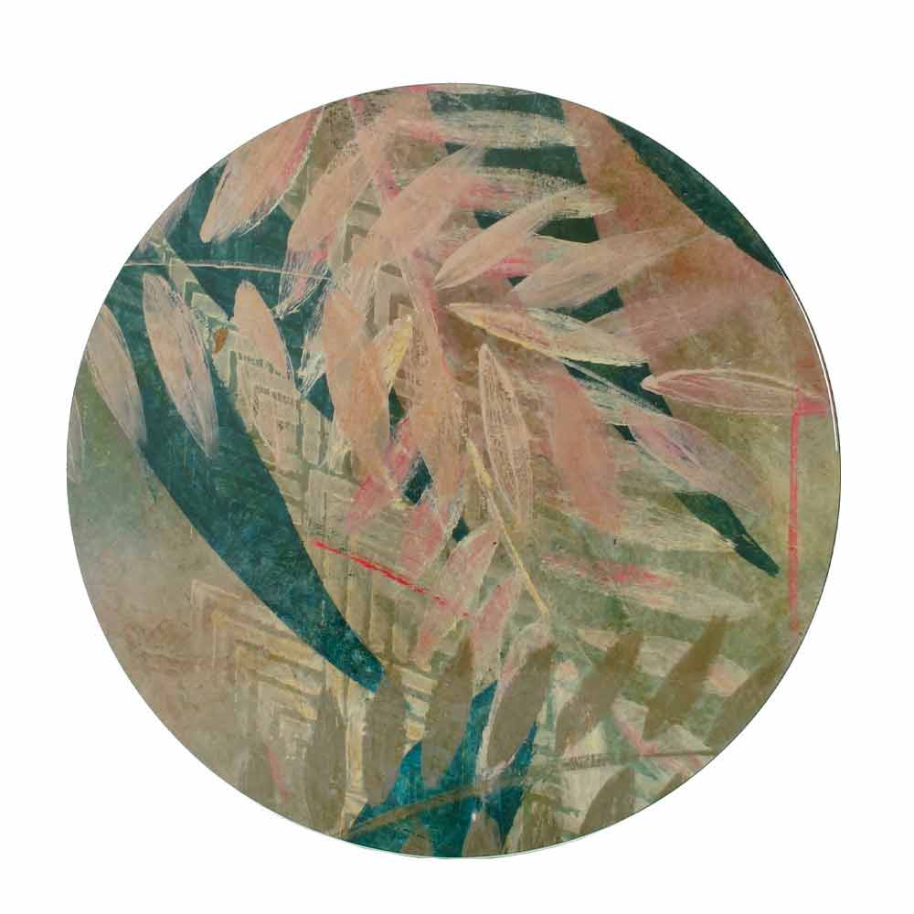 Una pintura que nace de la meditación y de un viaje, físico en la India, pero también y sobre todo interior a uno mismo. Los colores elegidos para la pintura son los primarios, se mezclan para crear el color deseado cada vez. En un juego de sombras y superficies, estas pinturas cuentan el tiempo en dos dimensiones: el tiempo que pasa y el momento mágico de la meditación. Cuadros combinados con objetos de decoración de uso común como mesas de centro para darle un toque mágico y único a tu salón.