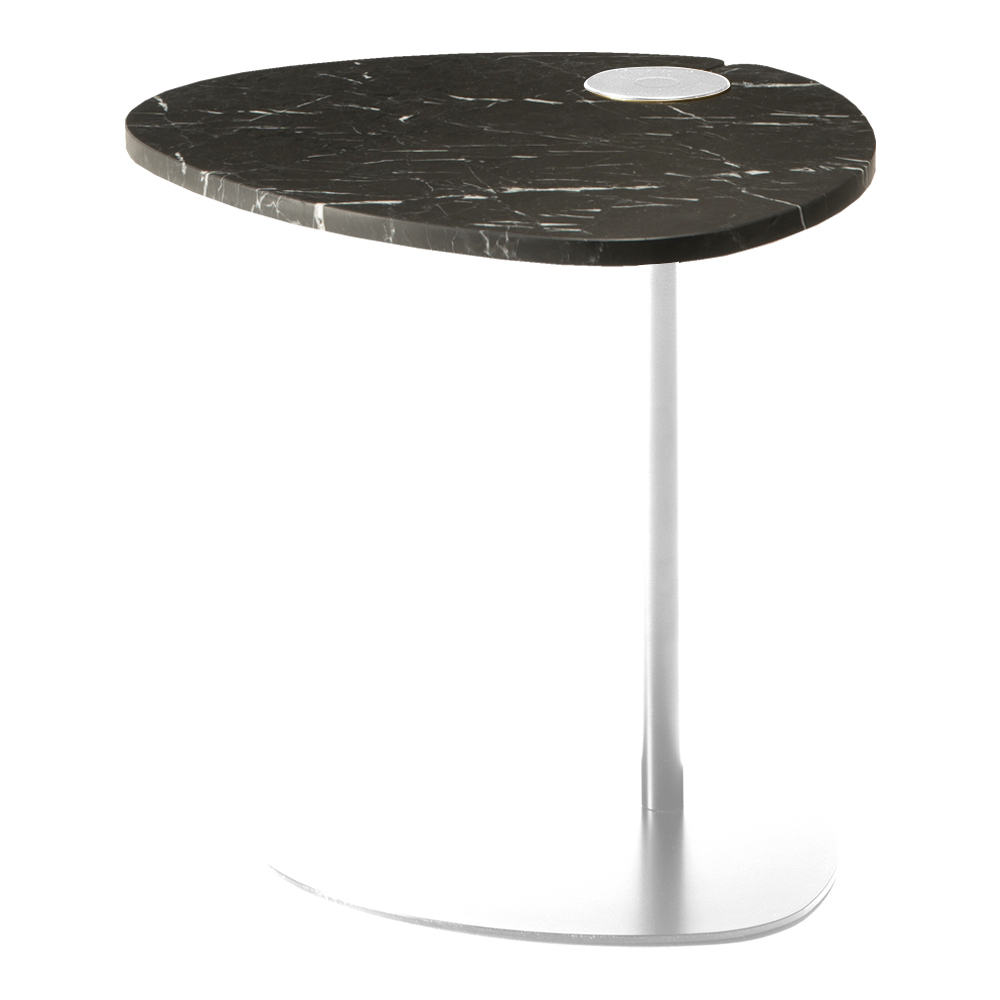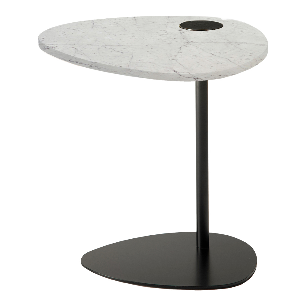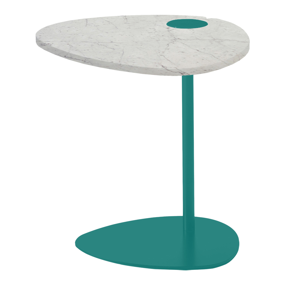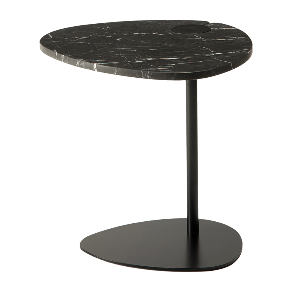 Esta mesita de sofá para el salón está inspirada en las formas irregulares y naturales de los guijarros alisados por el agua. Las particulares e interesantes líneas se diferencian para realzar la estancia y darle un toque de refinamiento. Su original y elegante diseño está compuesto por diferentes materiales pero que se comunican entre sí en una armoniosa ligereza: el fino pero resistente metal de la estructura sostiene la encimera de mármol.