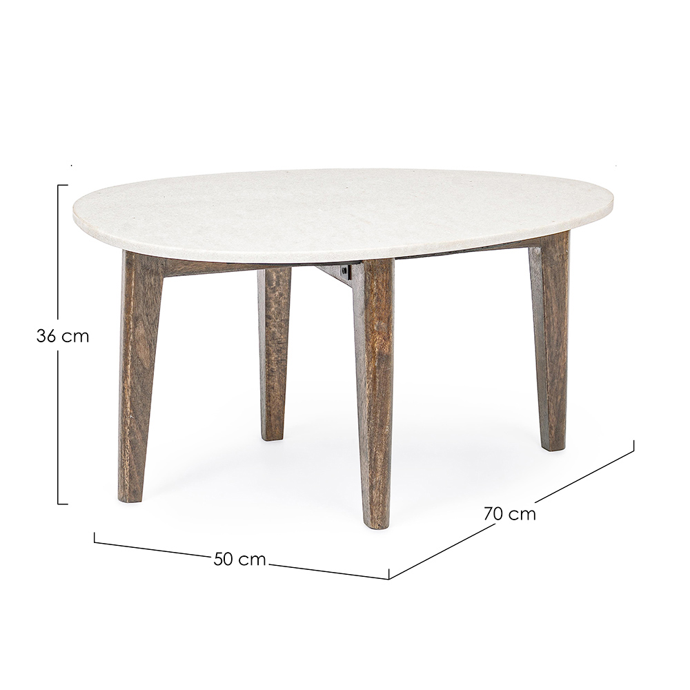 Mesa de Centro para Salón en Patas de Mármol y Madera de Mango - Desiderio