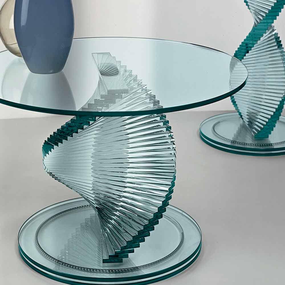 Esta mesa de centro para el salón se caracteriza por su diseño único y extremadamente elegante fabricado íntegramente en cristal transparente.