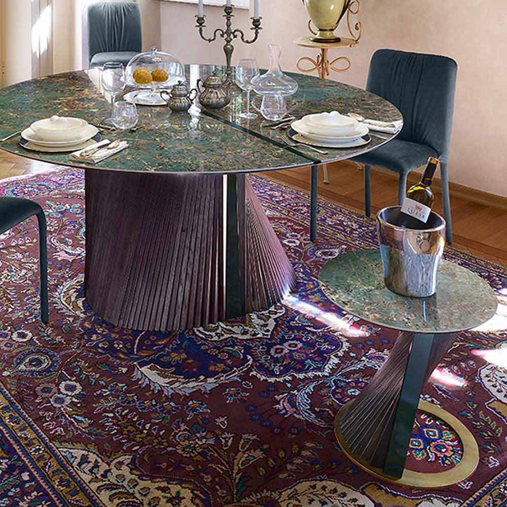 Mesa de centro de diseño con tapa redonda en gres efecto mármol, artículo de lujo Made in Italy.