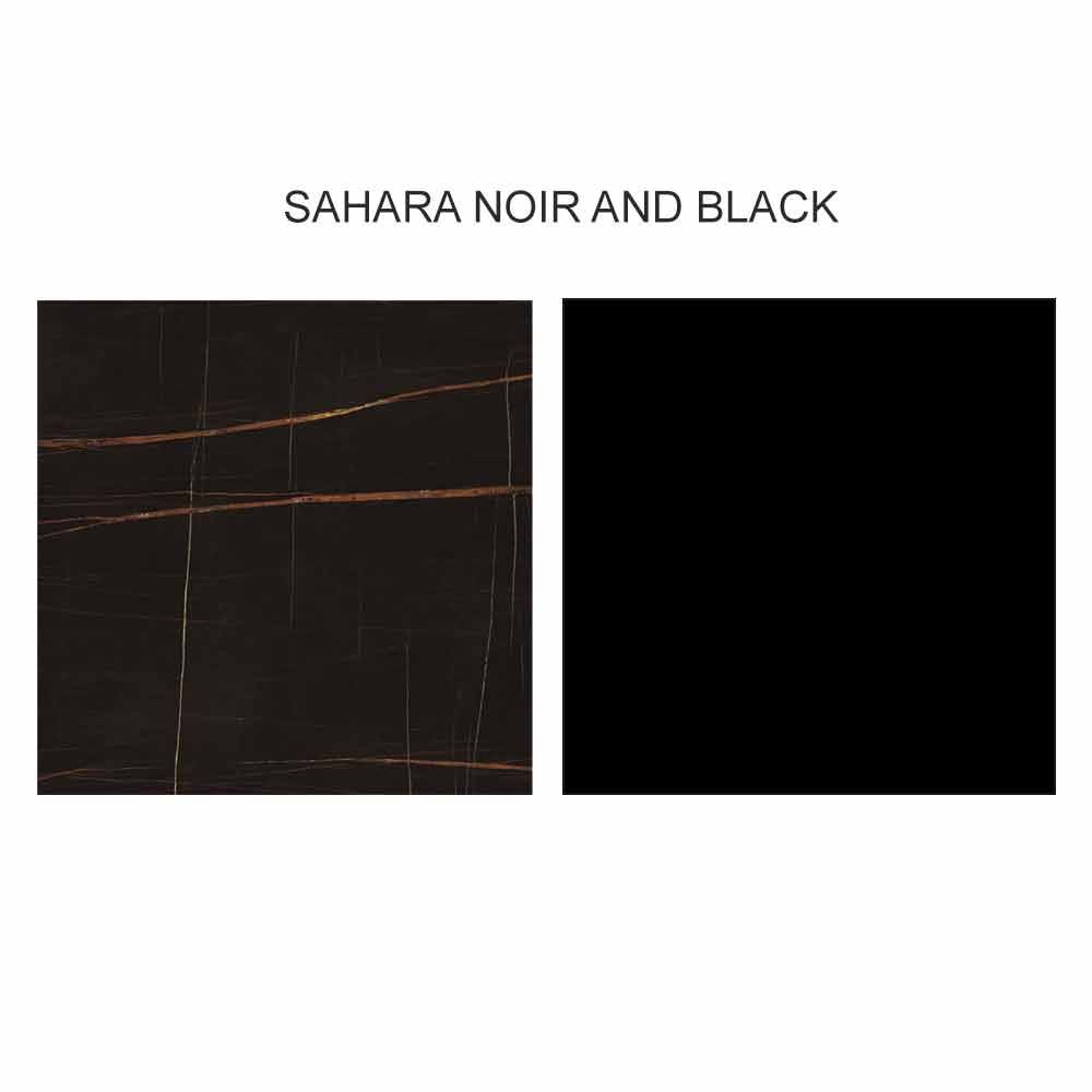 madera de fresno engrasados a mano en acabado gris negro. La encimera, por su parte, tiene forma redonda y está realizada en gres pulido efecto mármol.