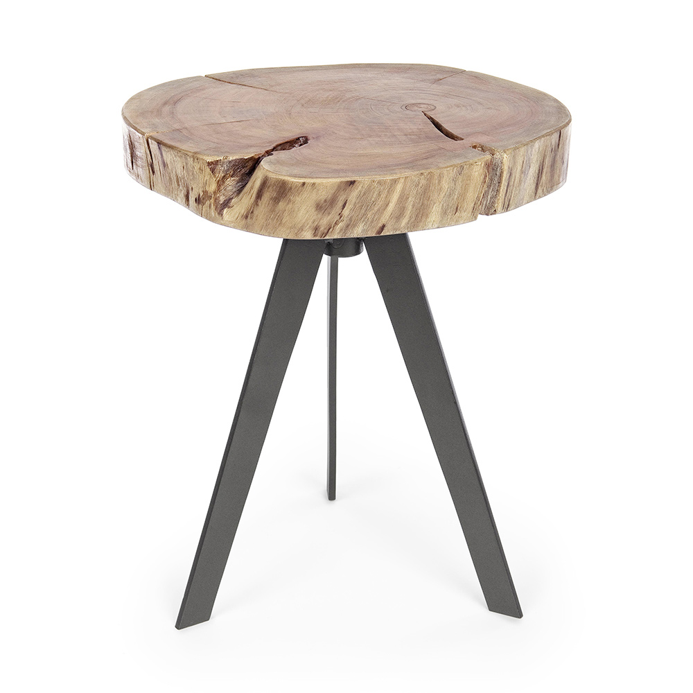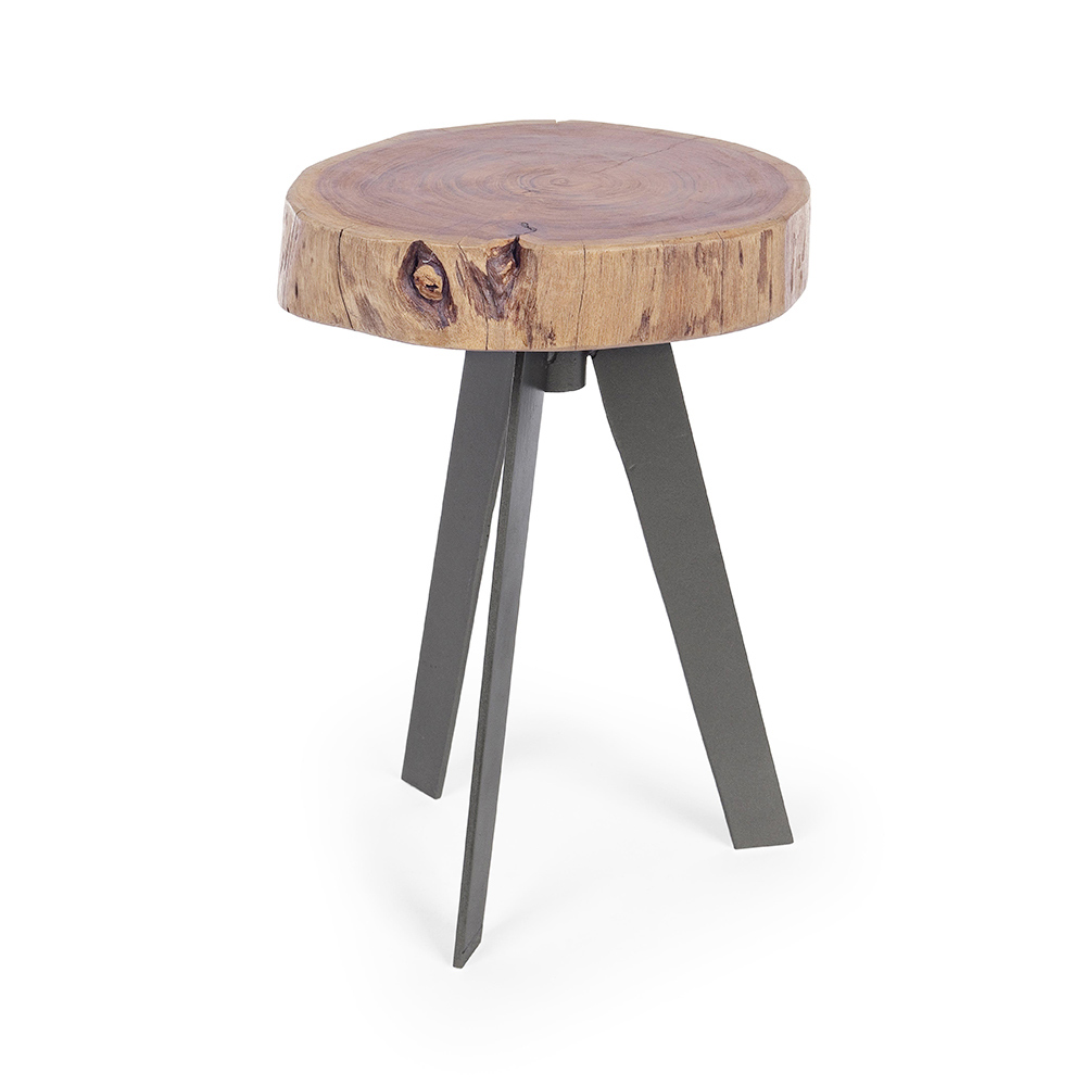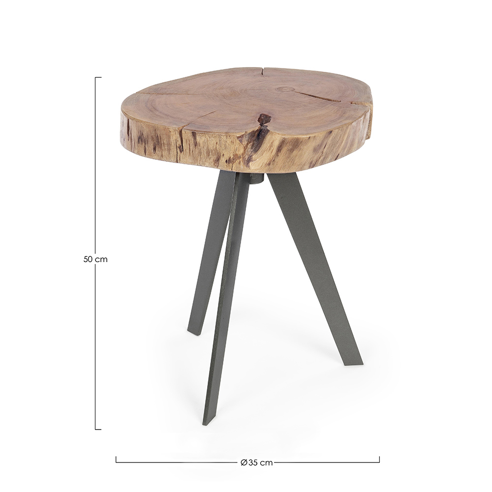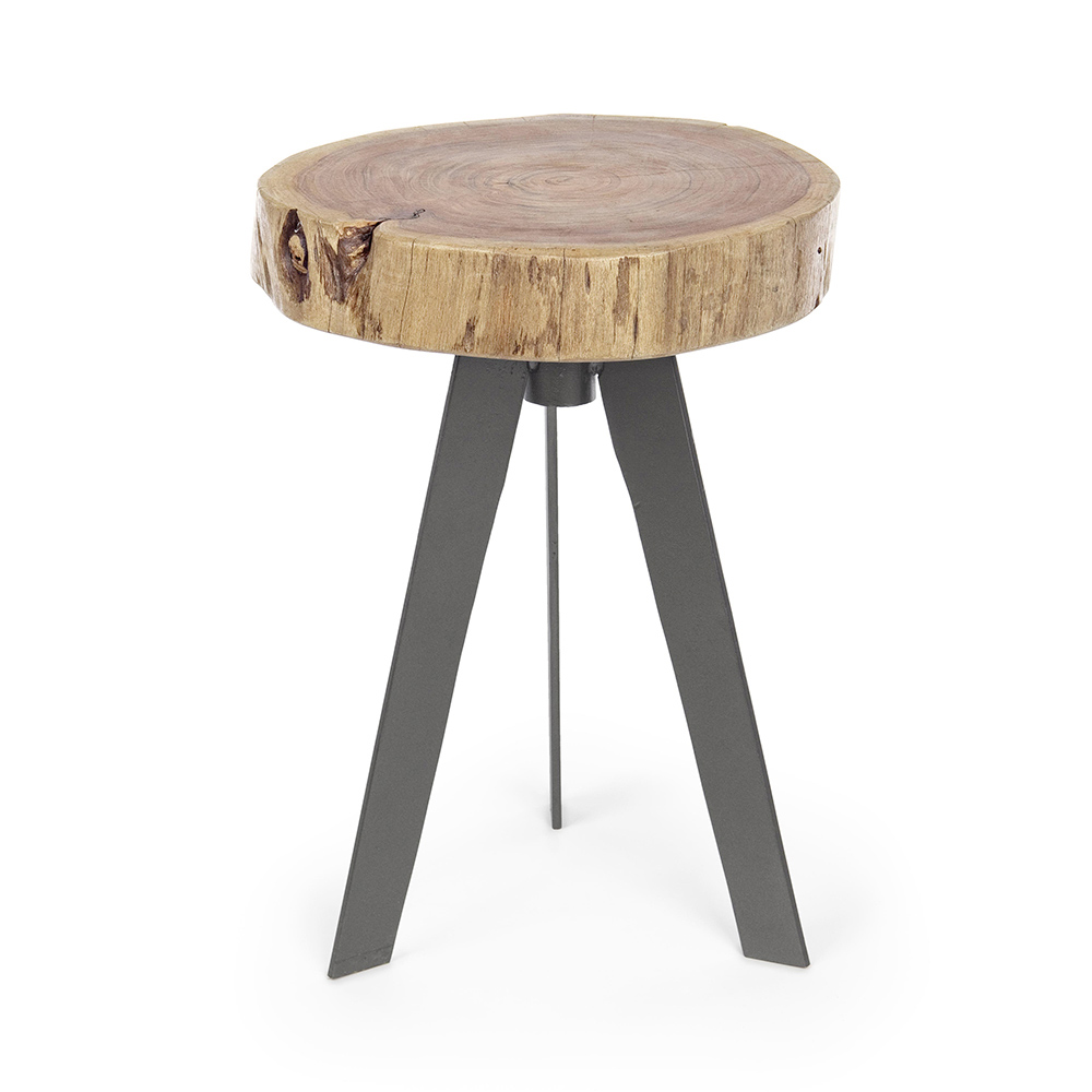 Mesita redonda en madera de acacia y acero, 2 medidas.