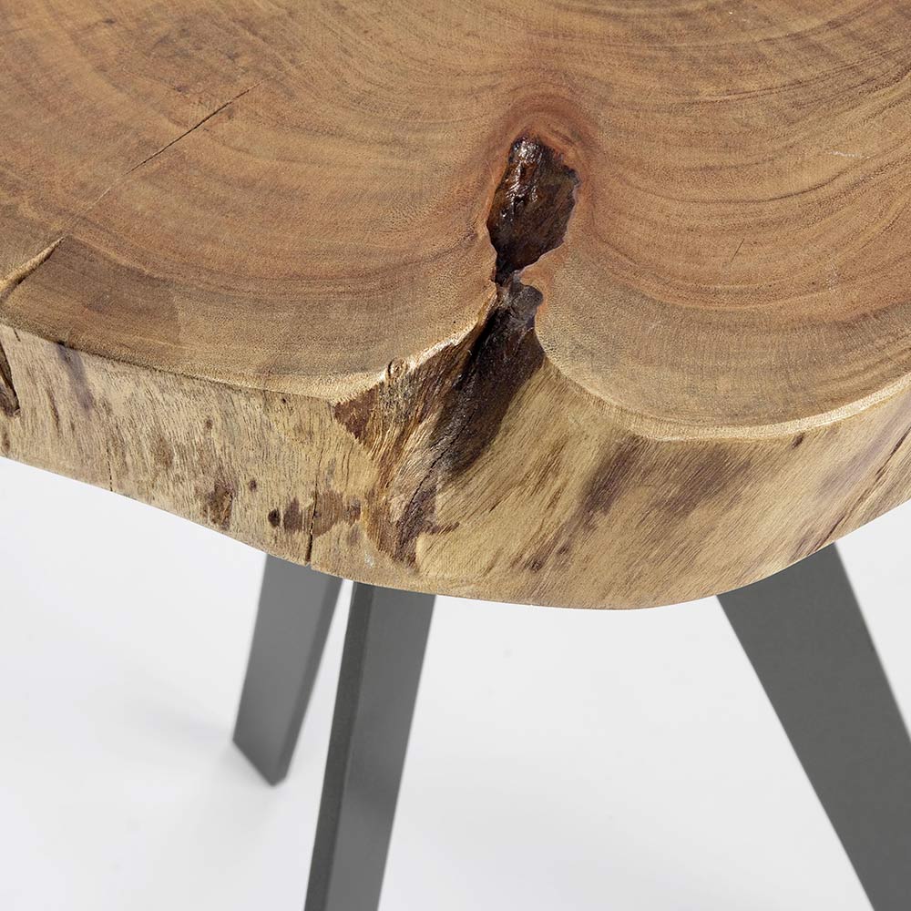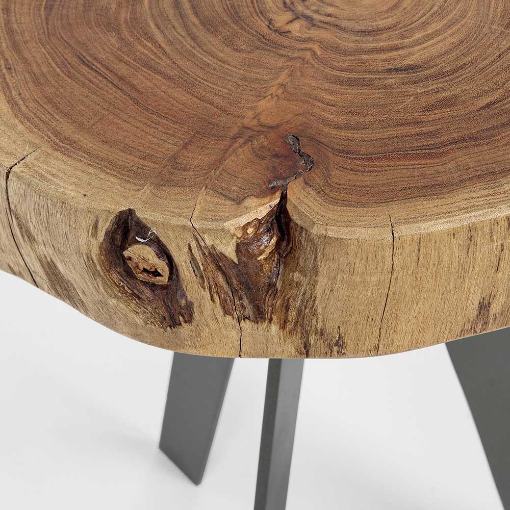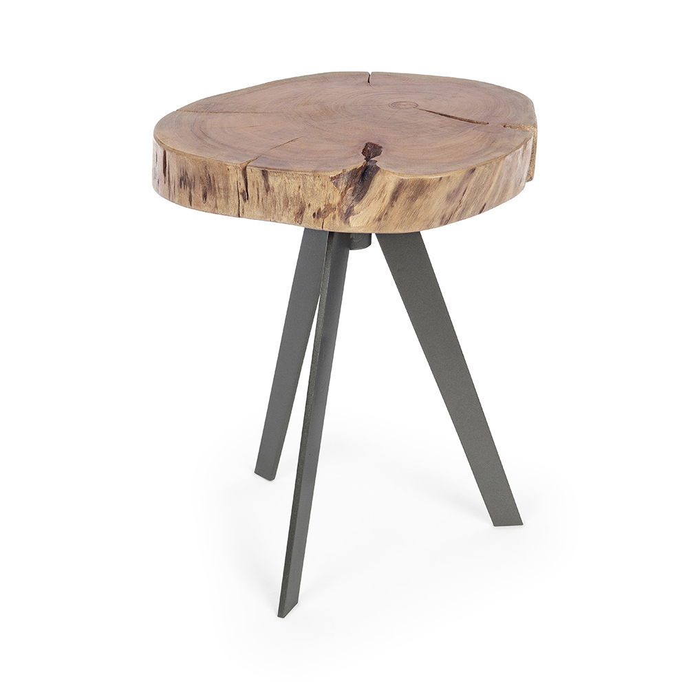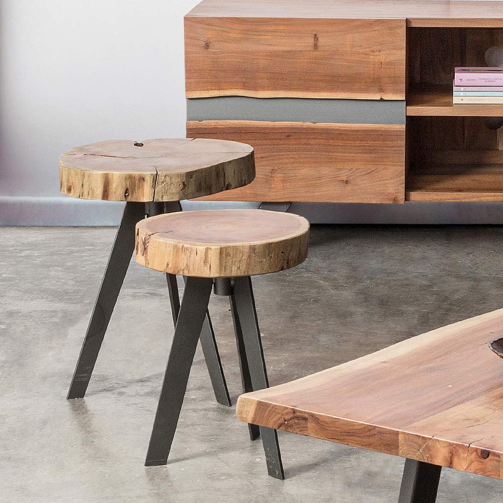 Mesita redonda en madera de acacia y acero, 2 medidas.