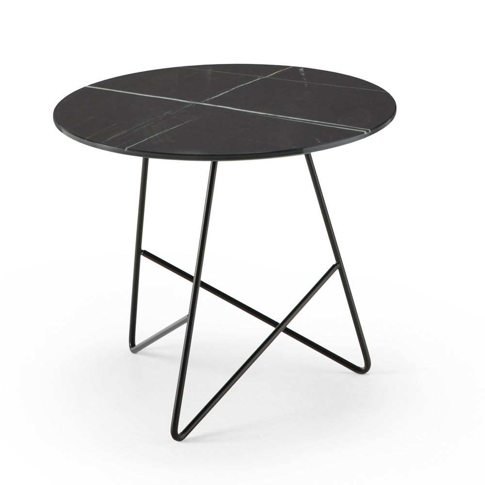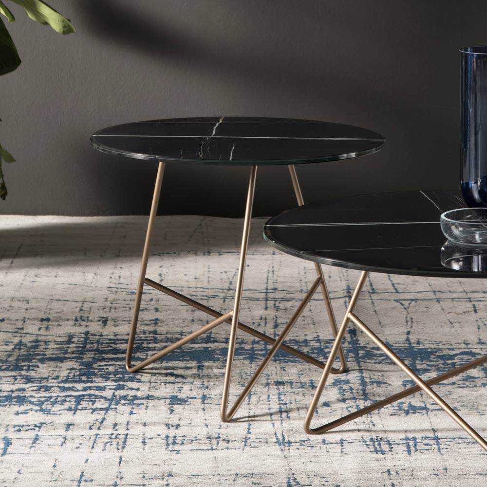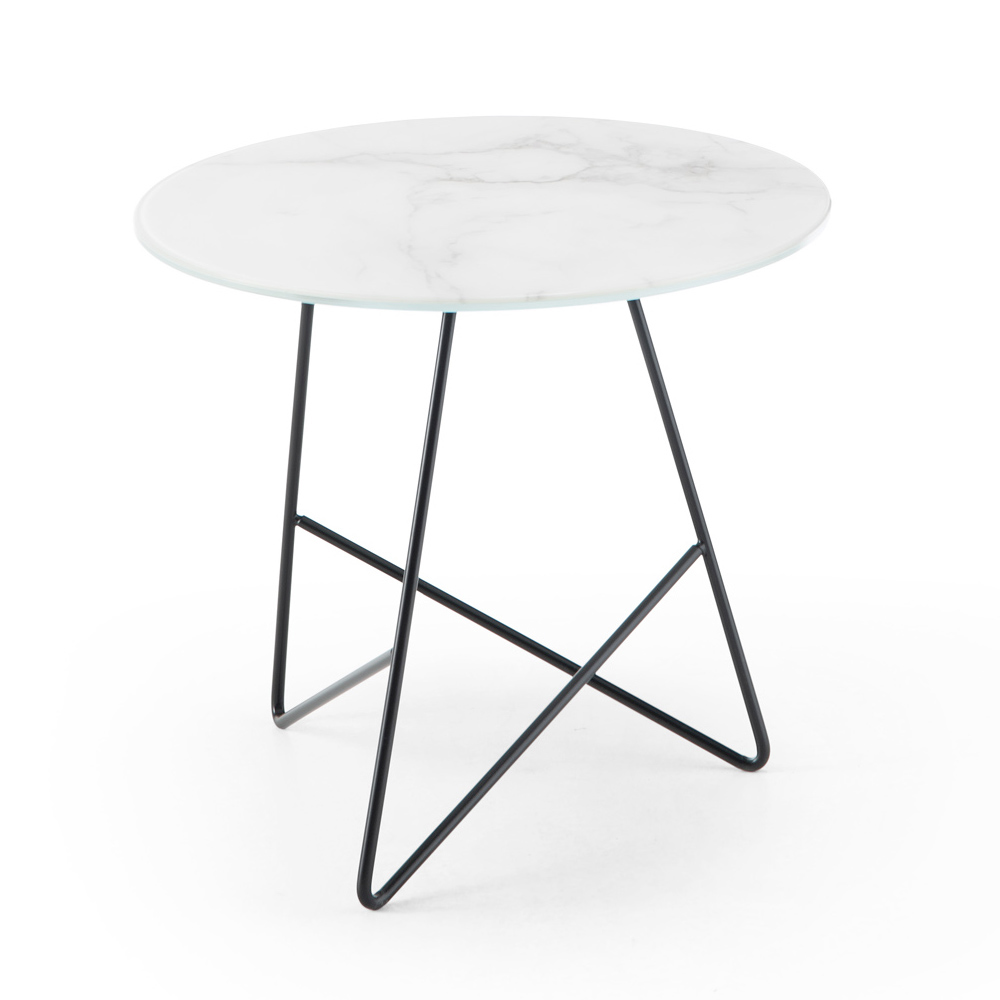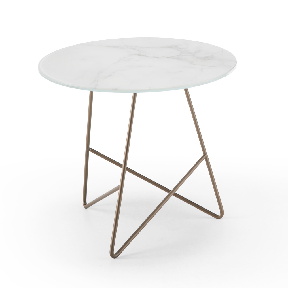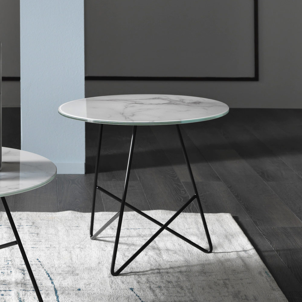 Mesa de centro redonda en metal y tapa de vidrio-mármol, artículo de lujo made in Italy.