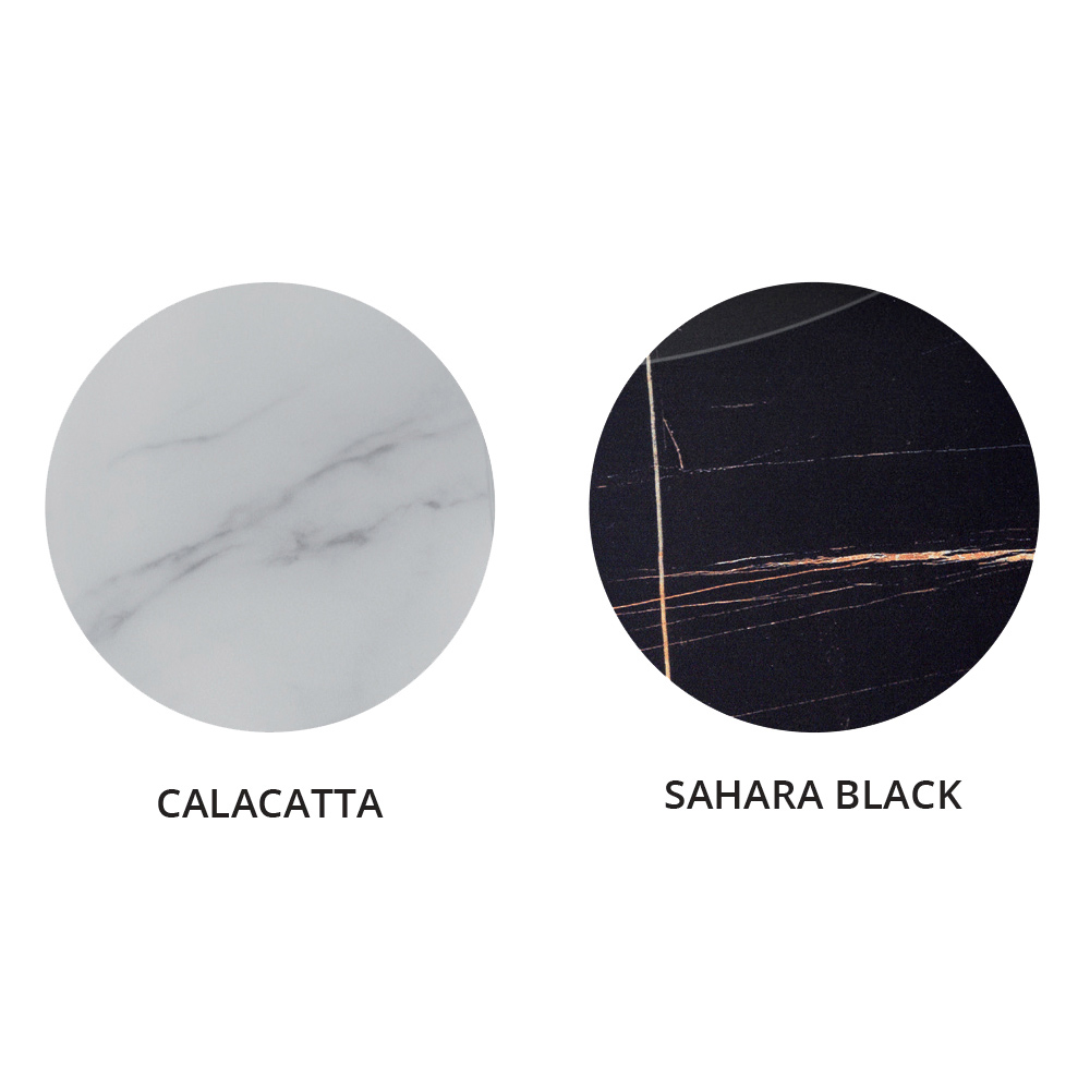 Acabados disponibles para la tapa:- Mármol-vidrio negro Sahara