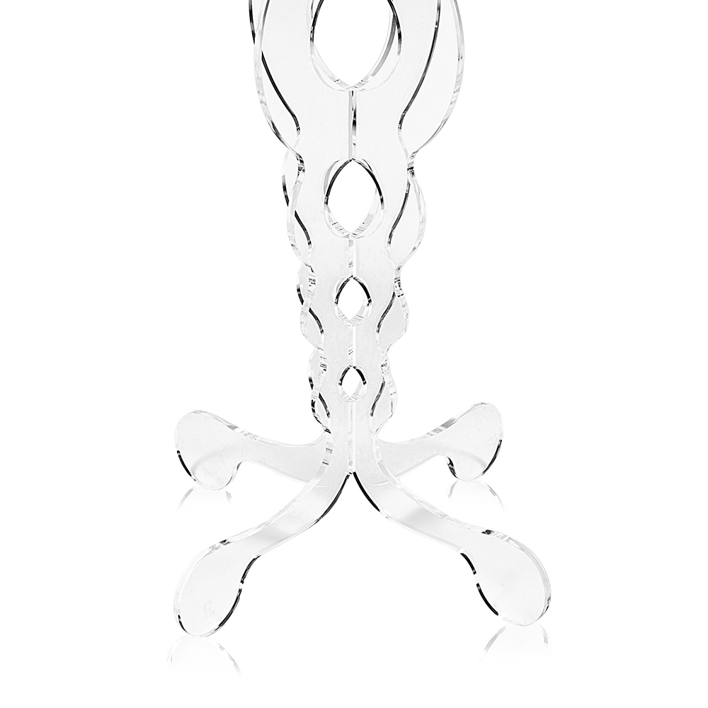 Esta versátil mesa se puede utilizar como mesita de centro , para exterior o como mesita de noche y se caracteriza por un diseño "arabesco" por sus referencias moriscas. Caracterizado por un brillo y brillo que permanecen constantes y sin cambios con el tiempo, está íntegramente fabricado en Italia con cristal acrílico 100% PMMA de polímero virgen.