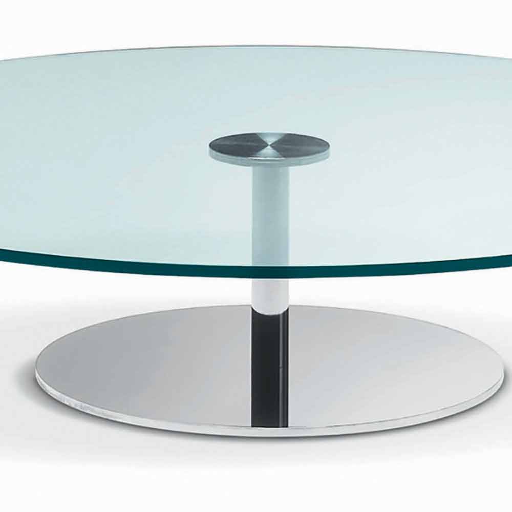 Esta mesita baja para salón de diseño redondo se caracteriza por la tapa realizada íntegramente en cristal extraclaro y una base de soporte de metal en acabado cromado, que crea maravillosos efectos luminosos y tridimensionales.