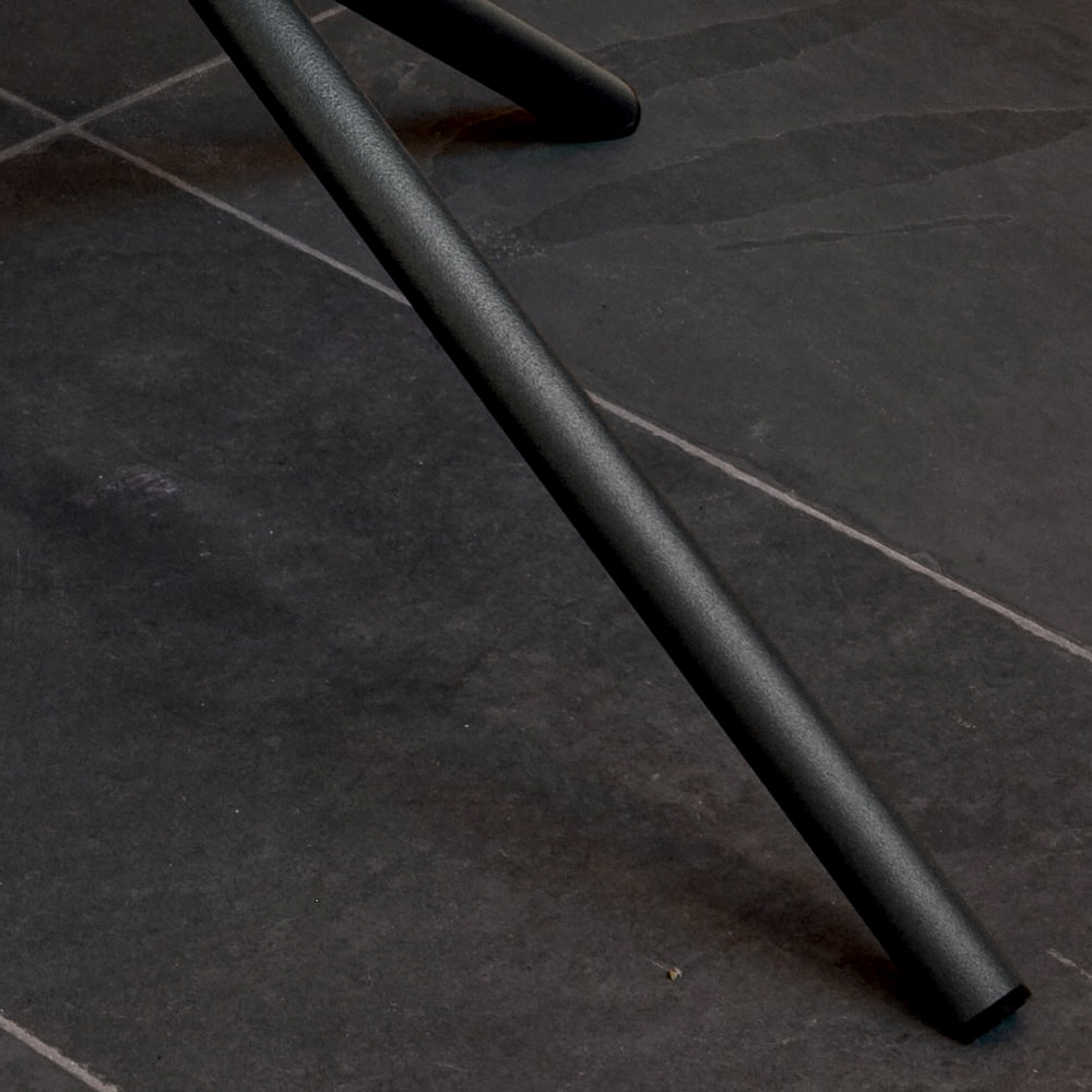 Esta mesa de centro redondacuenta con una estructura de tejido de metal recubierto de polvo de grafito en relieve y una tapa de cerámica mate en el panel. La característica peculiar del complemento viene dada por la intersección de las piernas para un diseño refinado y elegante.