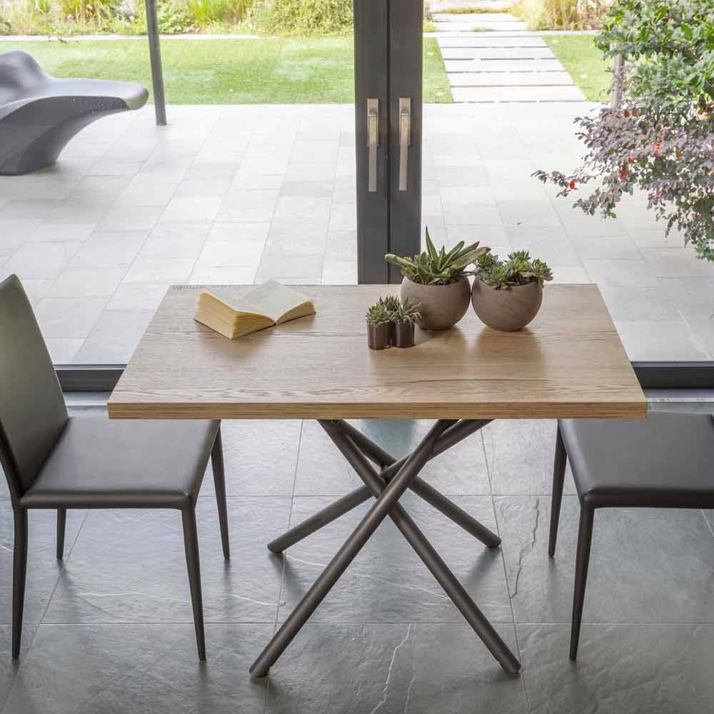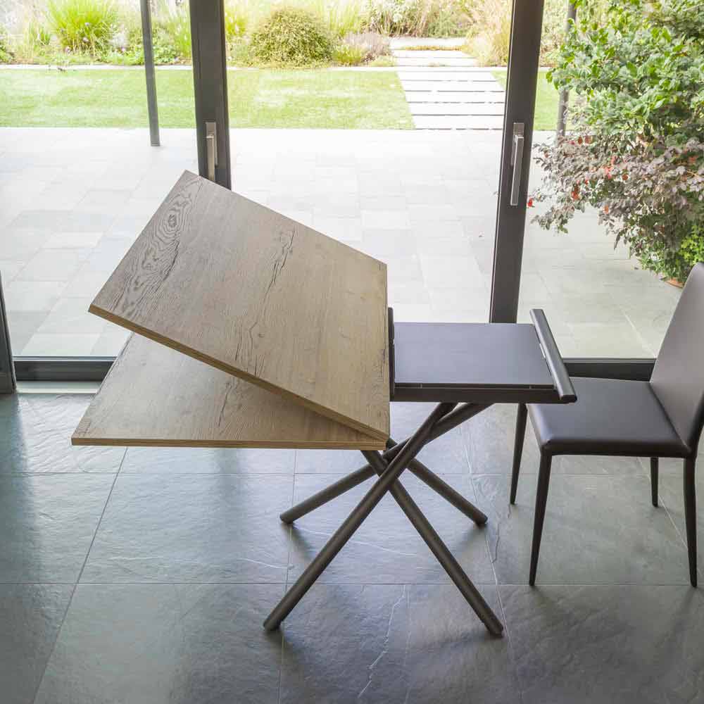 Mesa de centro convertible en metal y madera fabricada en Italia.