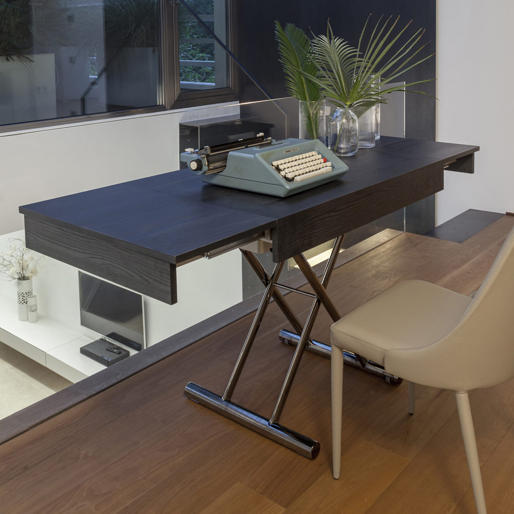 Mesita transformable en metal y con tapa de madera Made in Italy.
