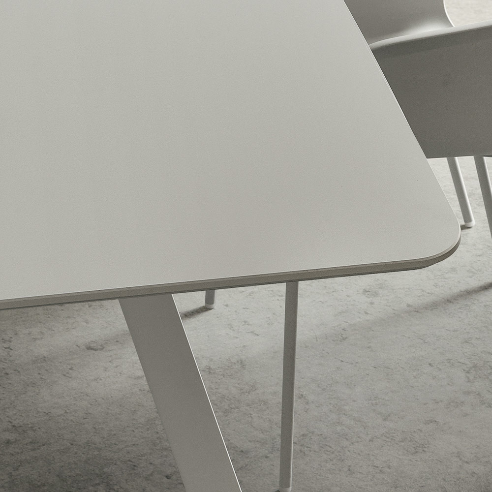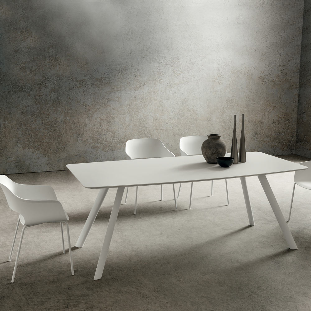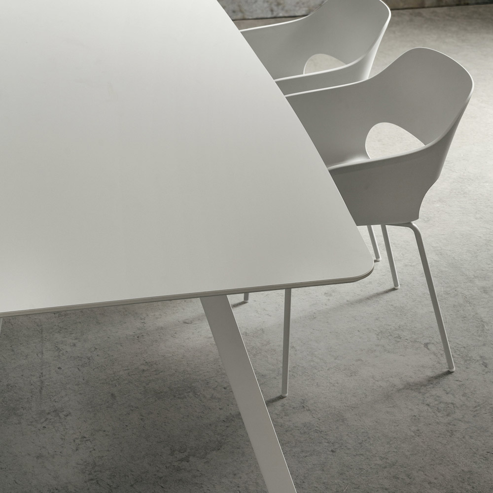 superficie resistente, agradable al tacto y extremadamente opaca , características que, además de aumentar el lado funcional de la mesa, subrayan y completan su refinado estética dando un