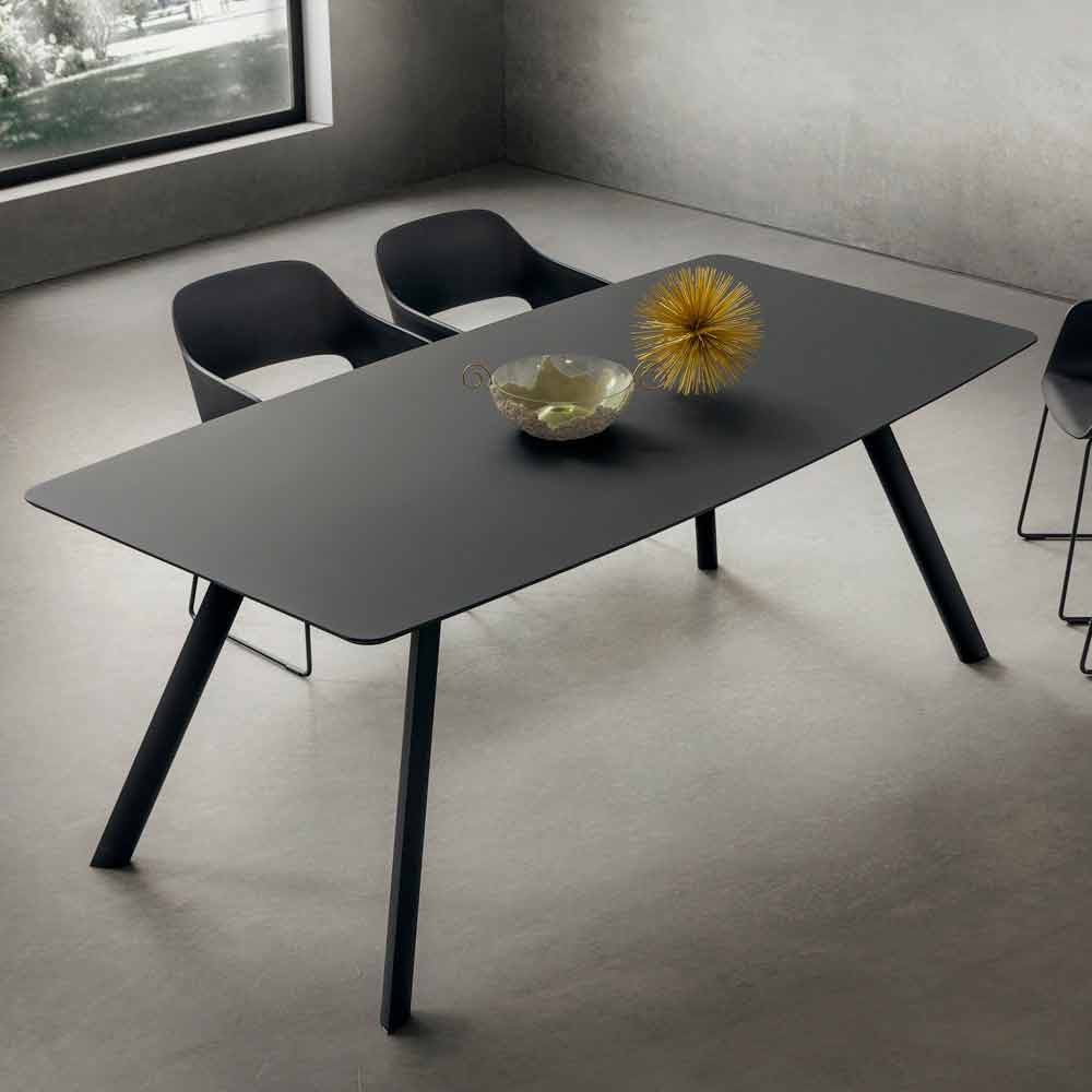 Mesa de comedor en estratificado fenix y aluminio cepillado Made in Italy.