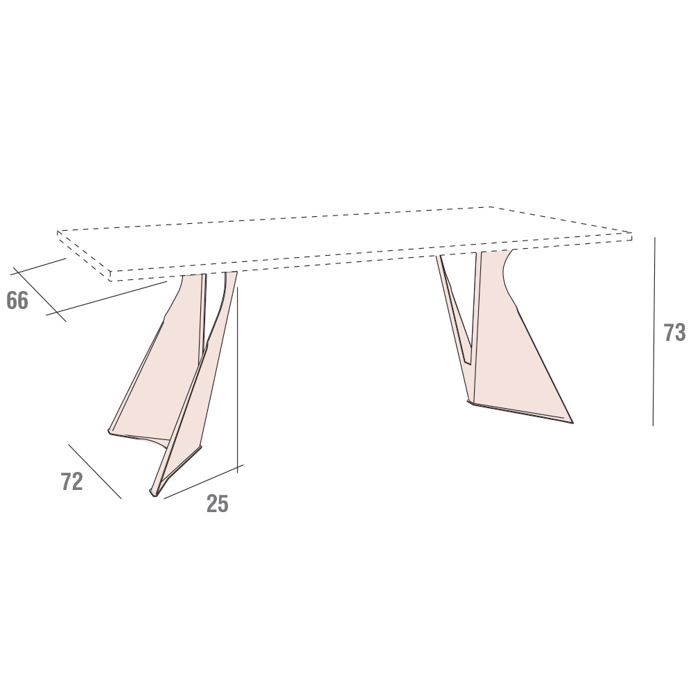 Mesa de comedor realizada con panel enchapado en acabado roble envejecido (6 cm de espesor) y patas de metal pintado con polvos epoxi. De la fabricación 100% Made in Italy y el uso de materias primas de alta calidad, nace un artículo sólido y resistente para amueblar comedores o cocinas modernas, caracterizado por un diseño imponente y majestuoso . La elegancia atemporal de la madera y sus maravillosas vetas se combinan a la perfección con una base de formas casi futuristas que confieren a la mesa su personalidad revolucionaria , creando la solución de decoración perfecta para quienes aman enriquecer sus ambientes de forma exclusiva. El espléndido acabado de la tapa también hace que este accesorio sea extremadamente funcional gracias también a los tres colores disponibles para la base que permiten crear combinaciones discretas y elegantes capaces de responder a cada necesidad y exigencia con estilo y un toque exclusivo .