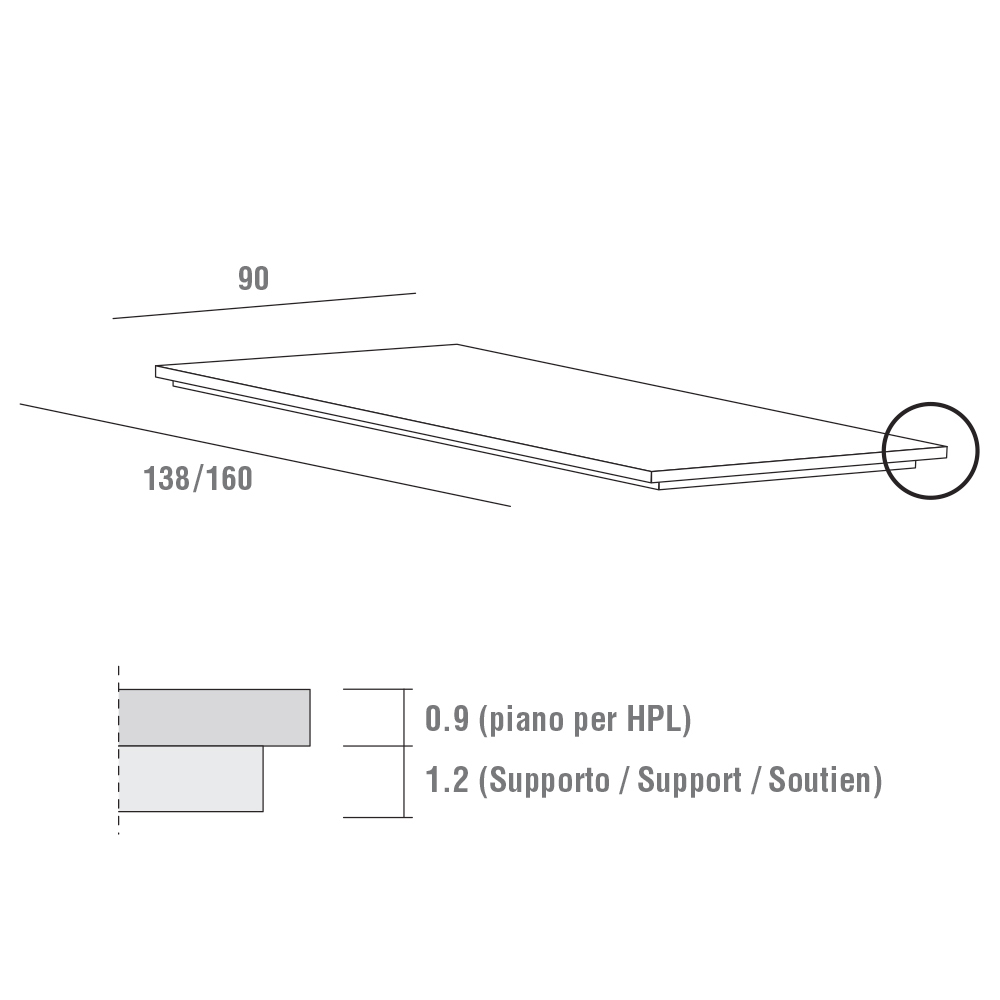 NB : el tablero y la base están disponibles en una amplia gama de acabados diferentes. No se garantiza la continuidad de la veta entre la tapa y la extensión.