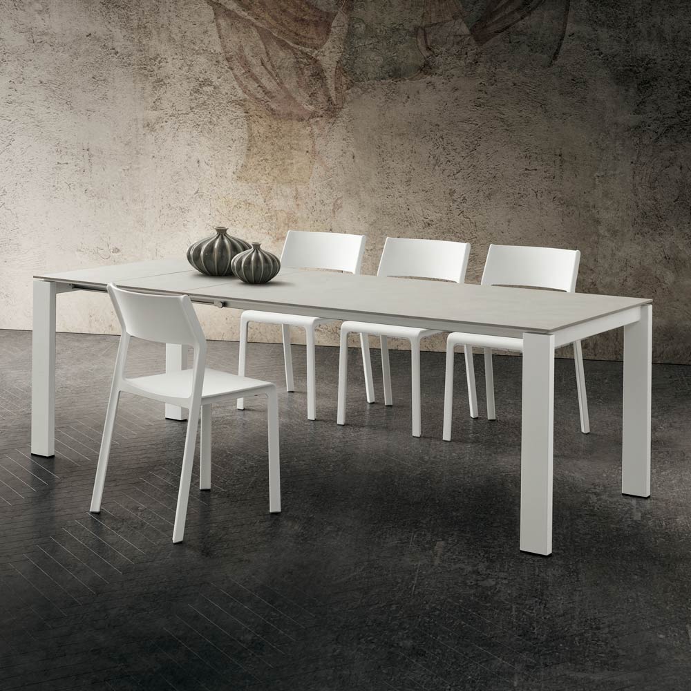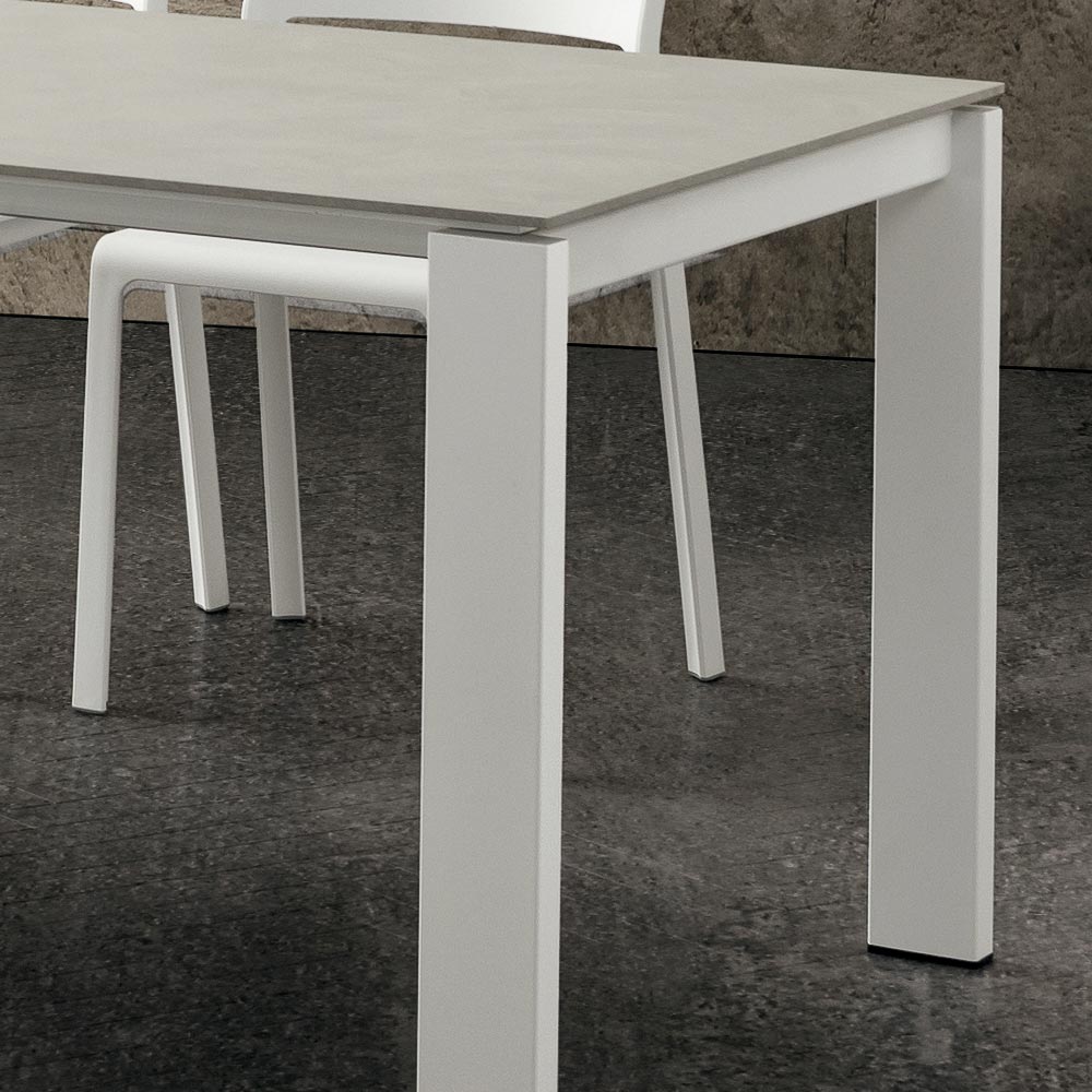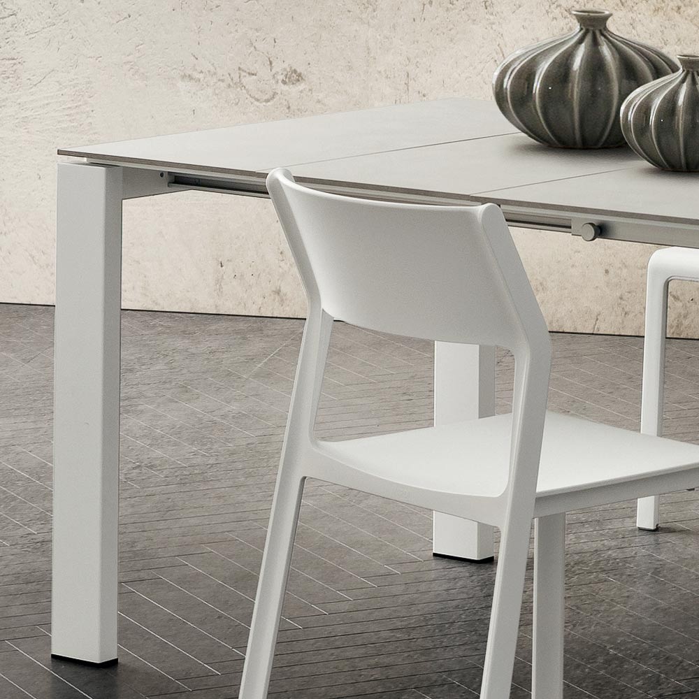 Mesa de comedor extensible en hpl Made in Italy de alta calidad y metal lacado en blanco.