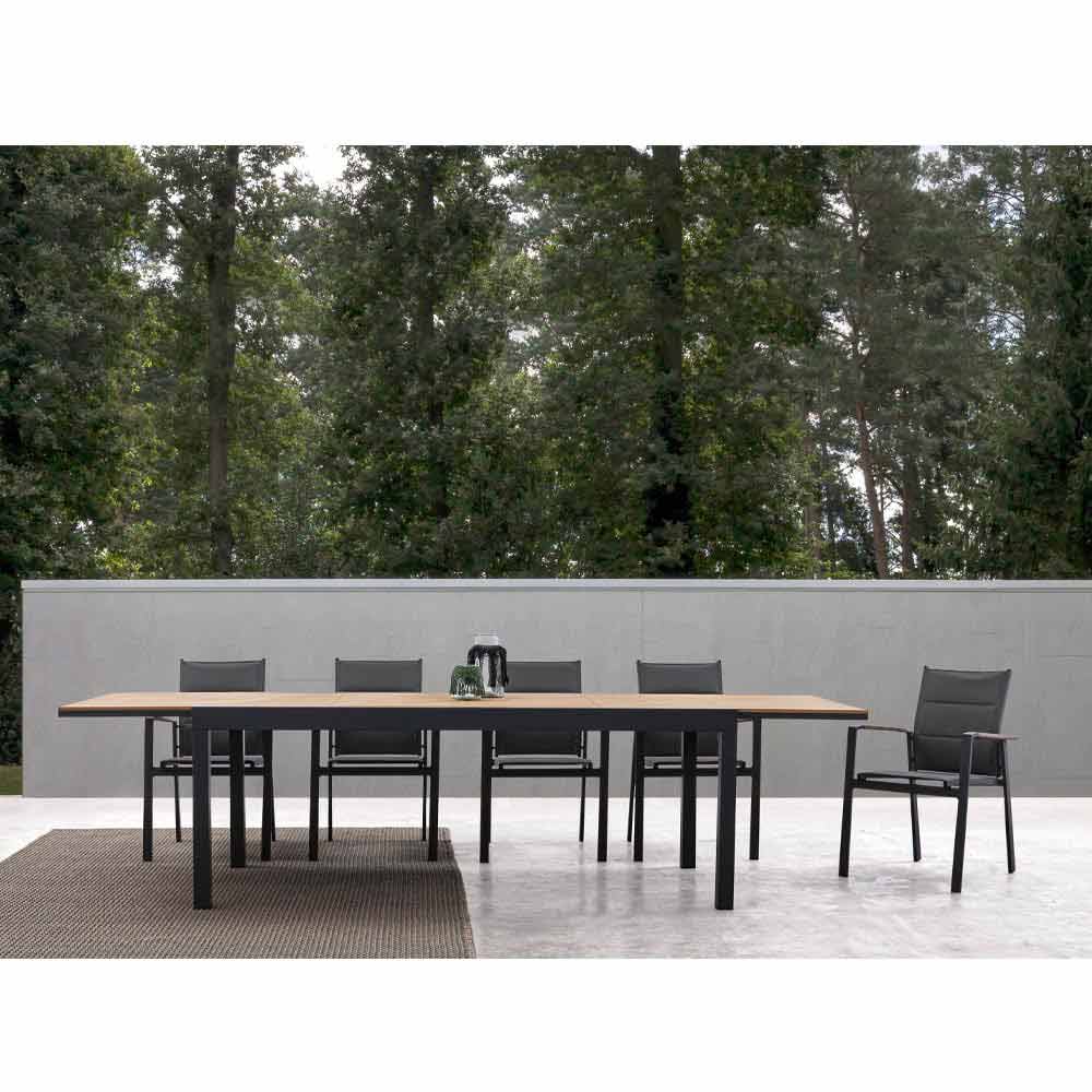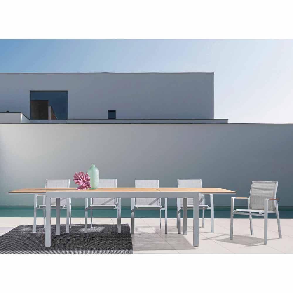 Mesa de comedor para exterior con tapa extensible de polywood.