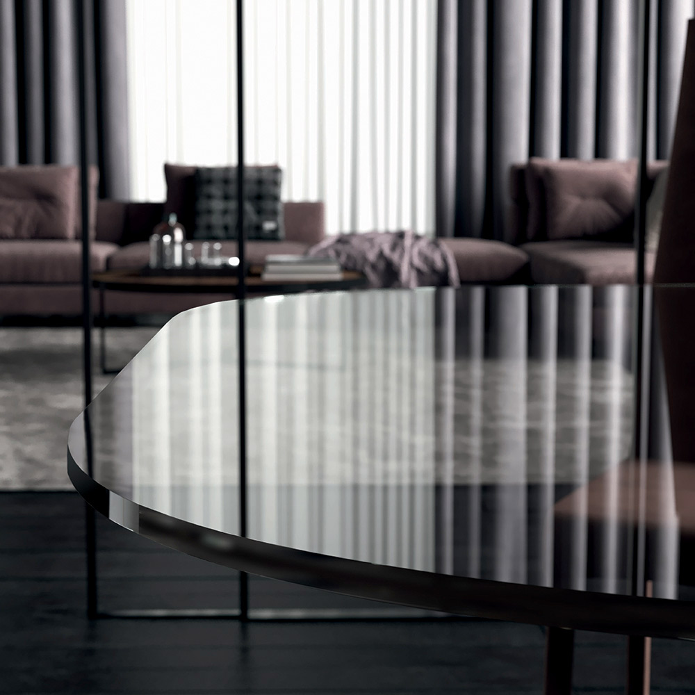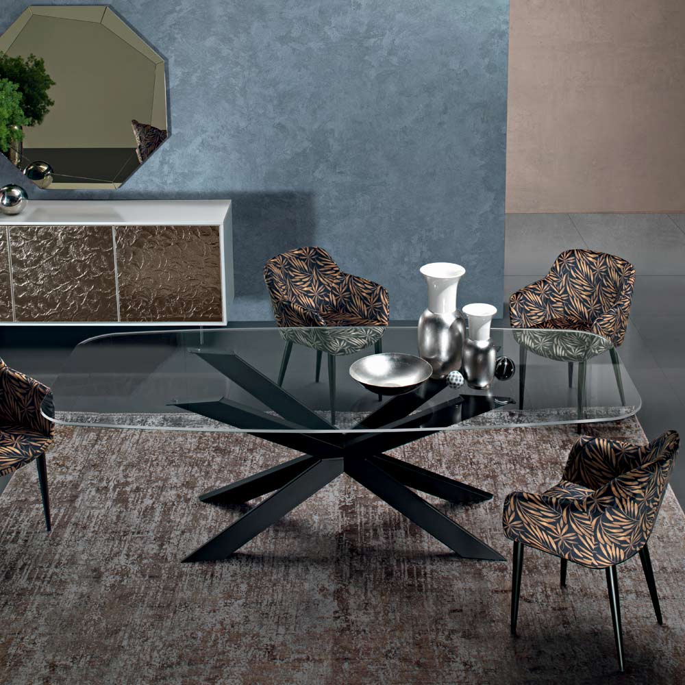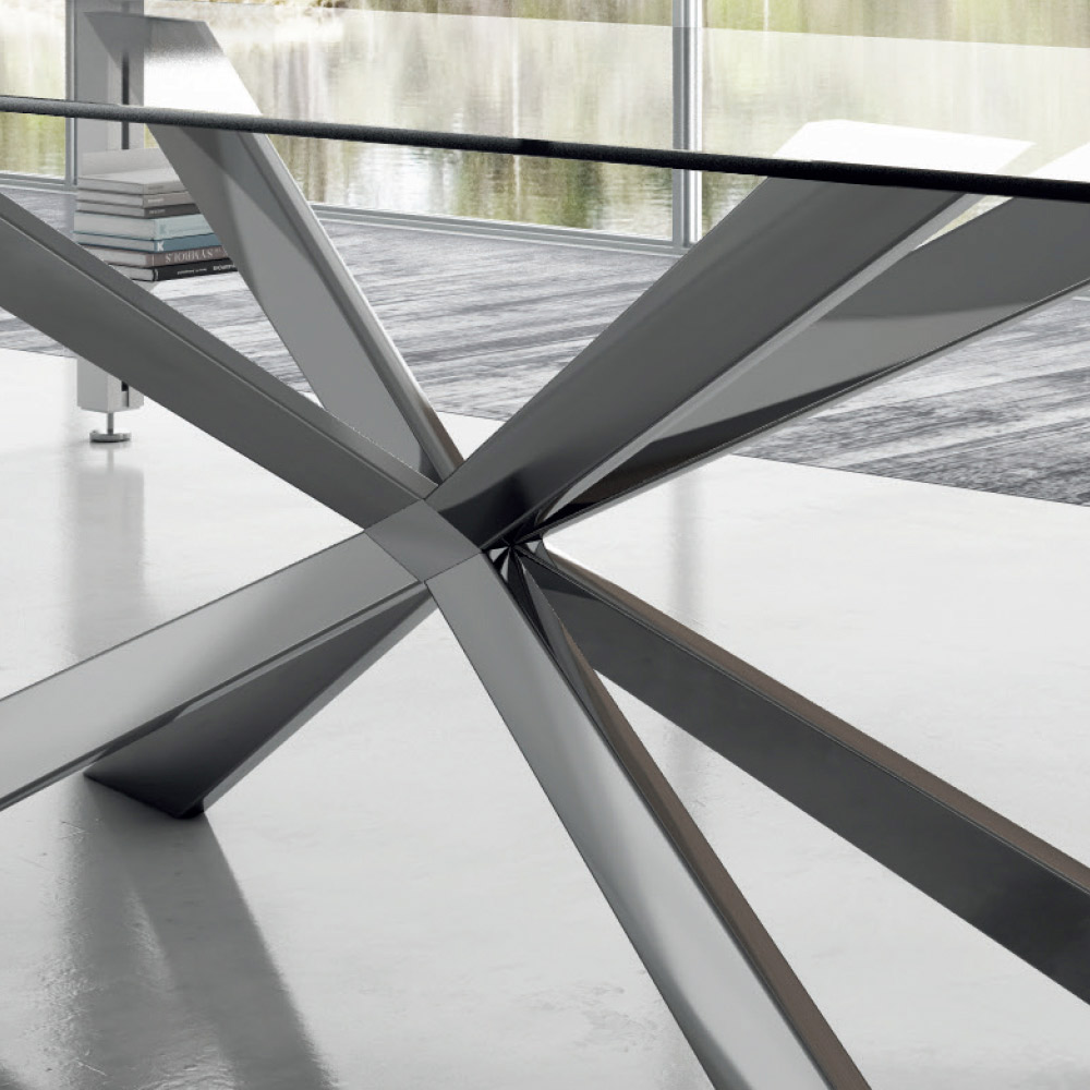 Mesa de comedor con tapa de cristal y base de acero Made in Italy.
