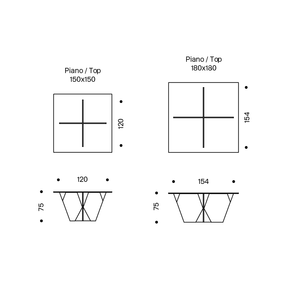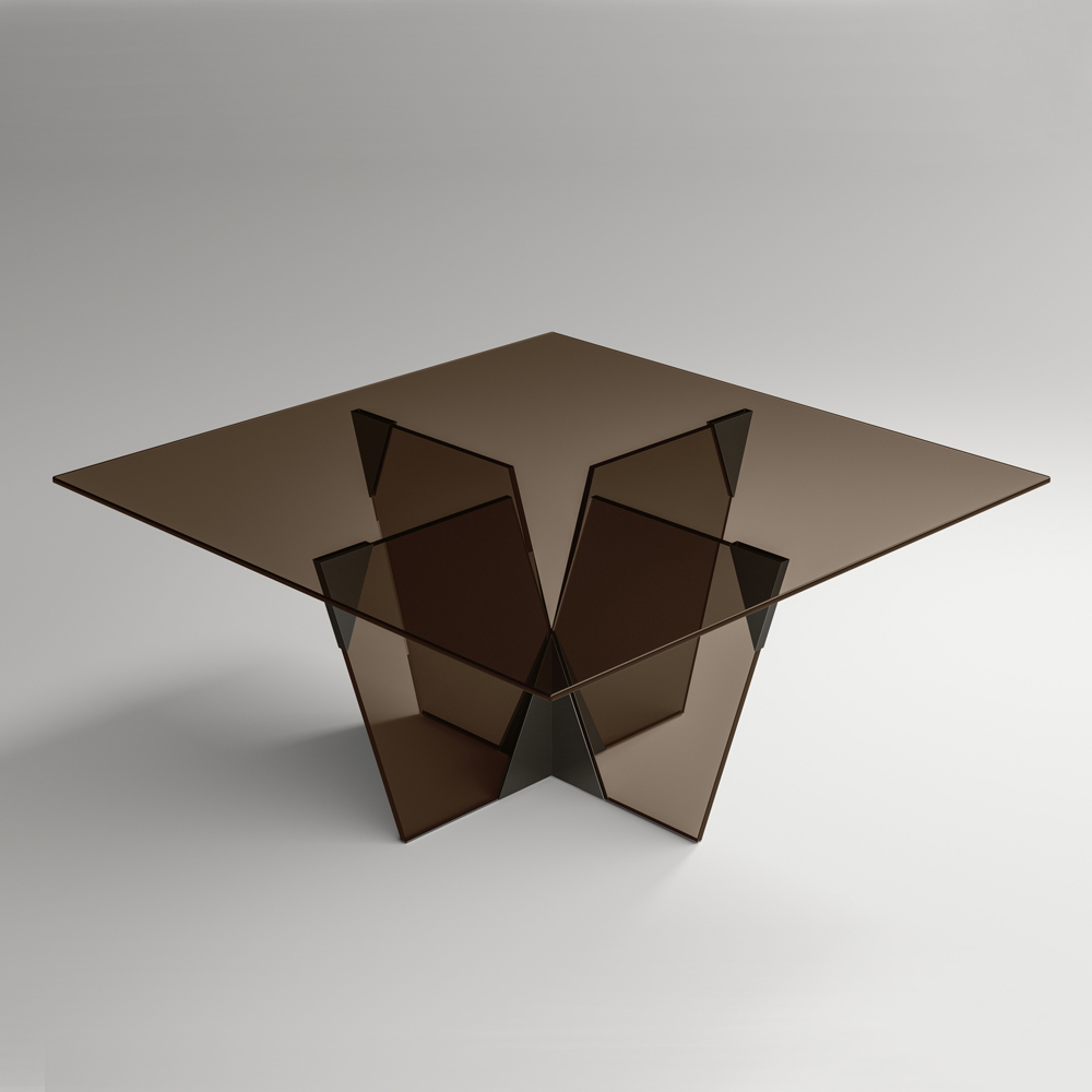 Mesa de cocina moderna totalmente fabricada en Italia con tapa cuadrada y base de vidrio enriquecida con detalles metálicos. Un mueble caracterizado por una estructura elegante y escultural que surge de la combinación de materiales de diferente naturaleza junto con la pasión por el procesamiento del vidrio, logrando así definir una representación de fuerza y carácter a través de diferentes formas y espesores. El punto fuerte de su estética es la base arquitectónica caracterizada por una junta piramidal de metal que constituye la parte esencial del producto. Los elementos metálicos completan el diseño de la mesa dando forma al vidrio de la base y enriqueciéndolo con personalidad y originalidad.