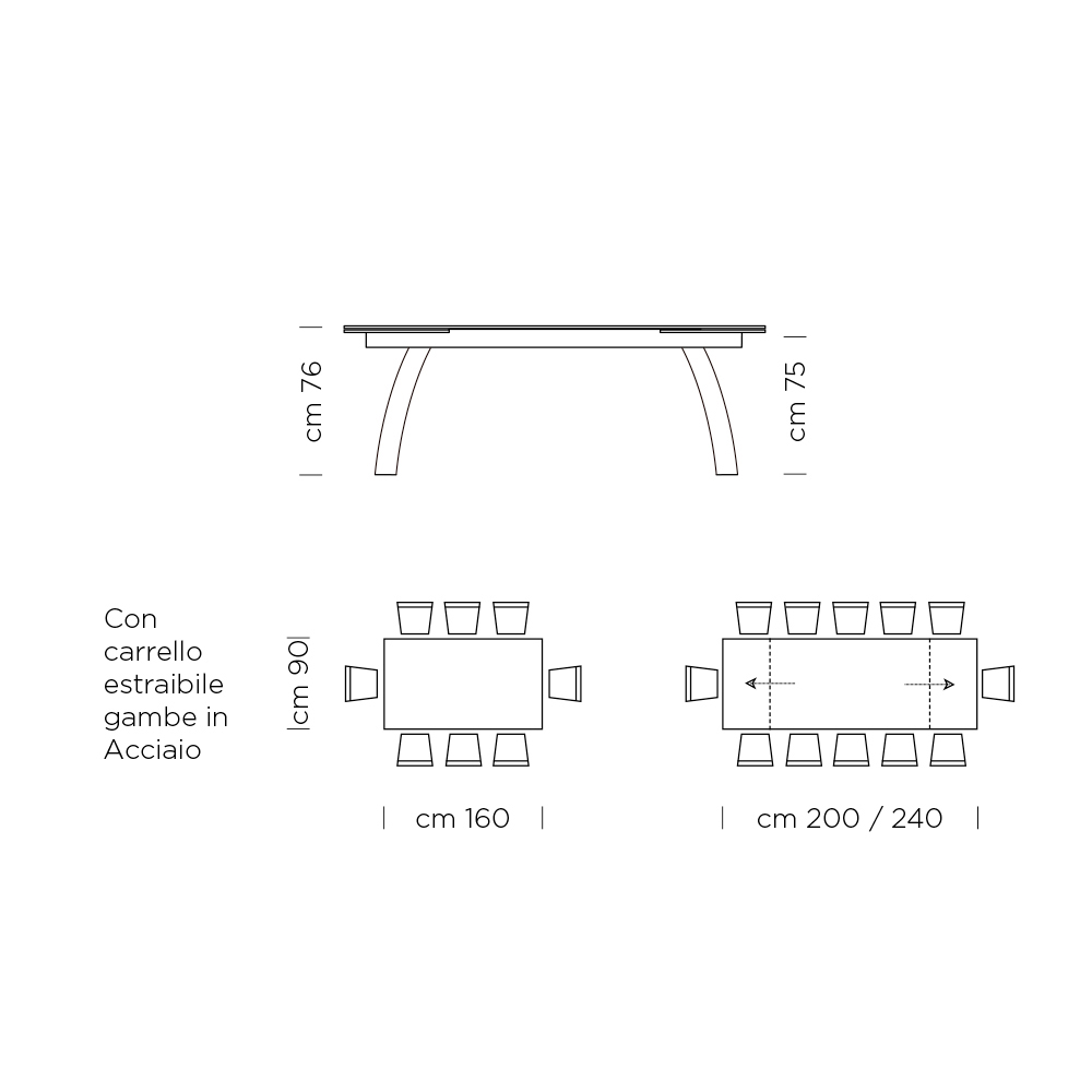 L 160/240 x P 90 x H 78 cm (8/12 asientos);