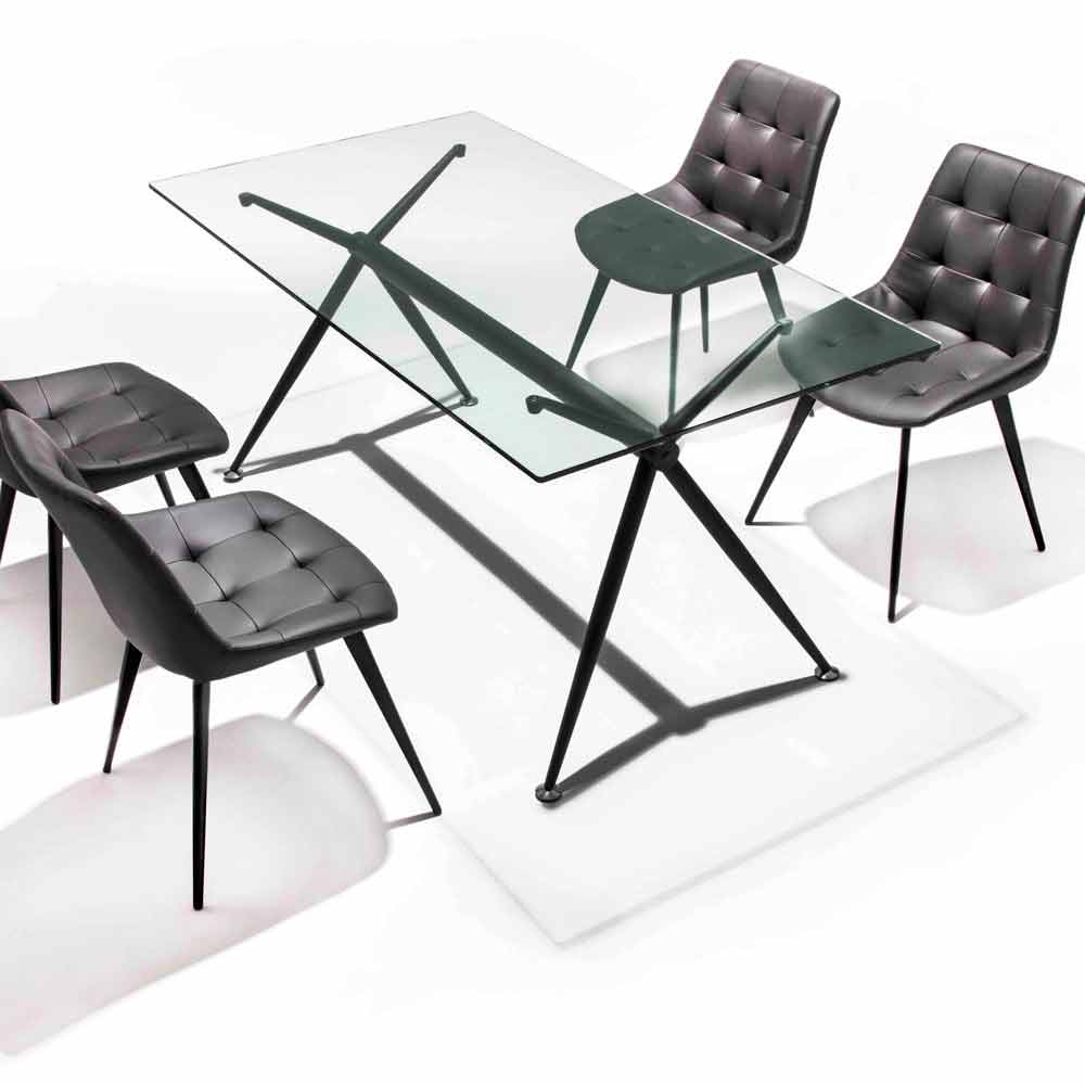 Mesa extensible moderna con tablero de vidrio templado modelo Lord