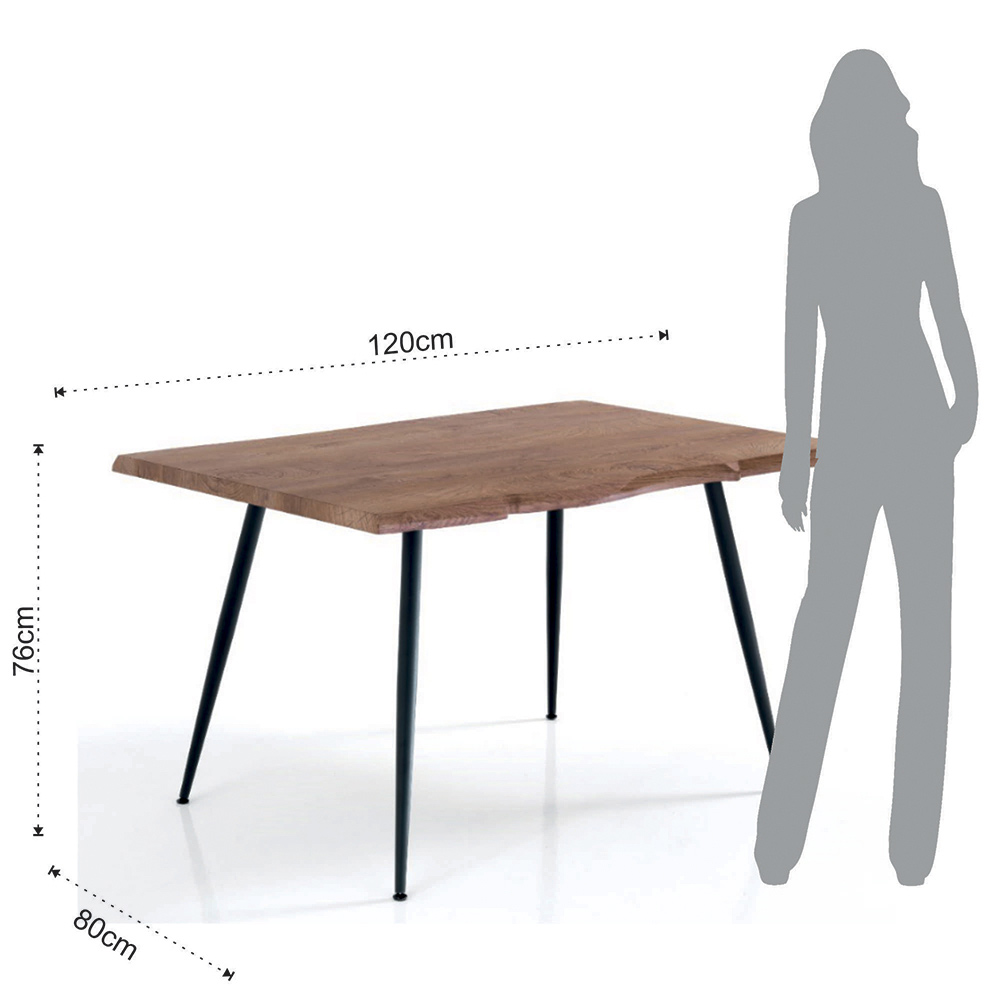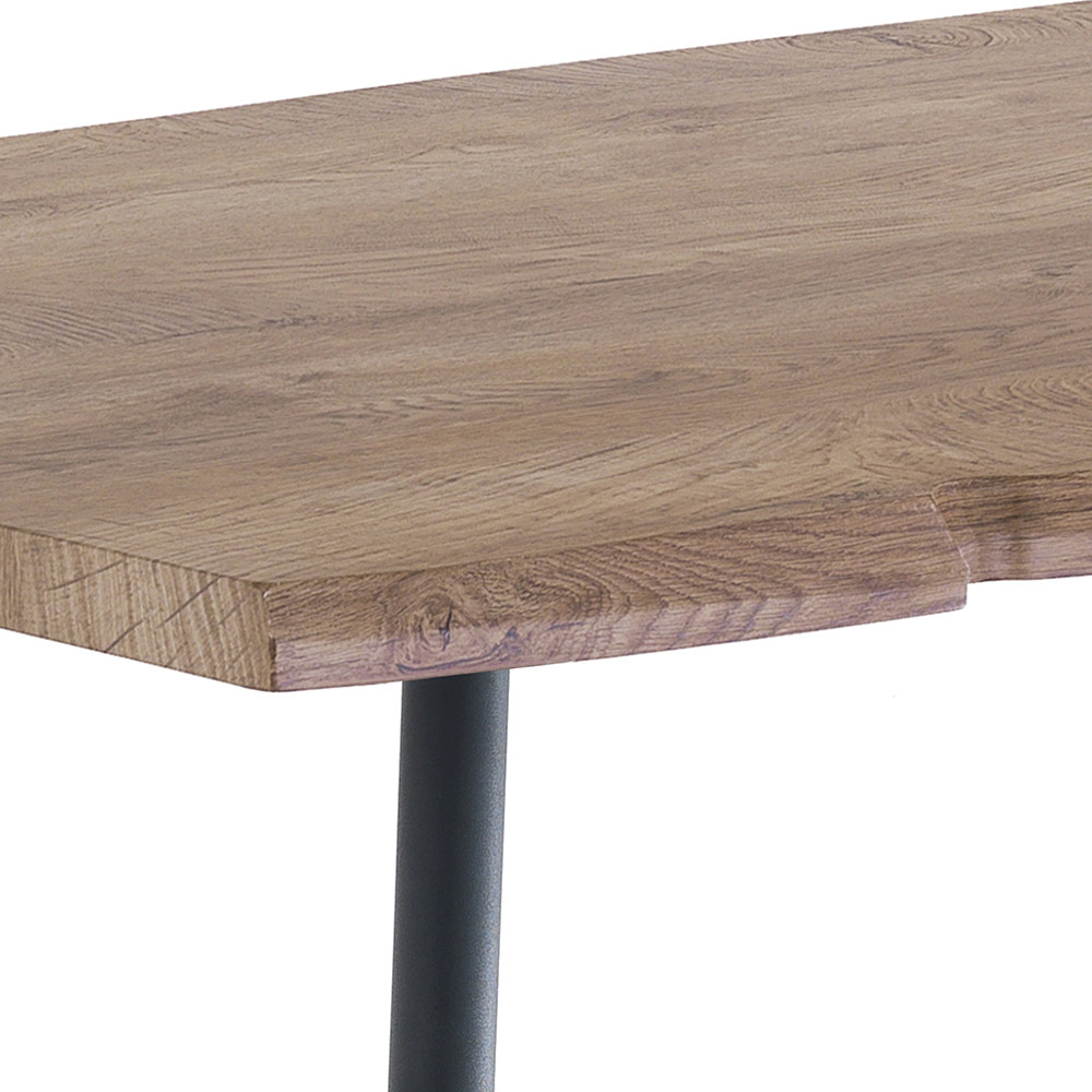 Mesa de comedor en mdf acabado roble con patas de acero pintado.