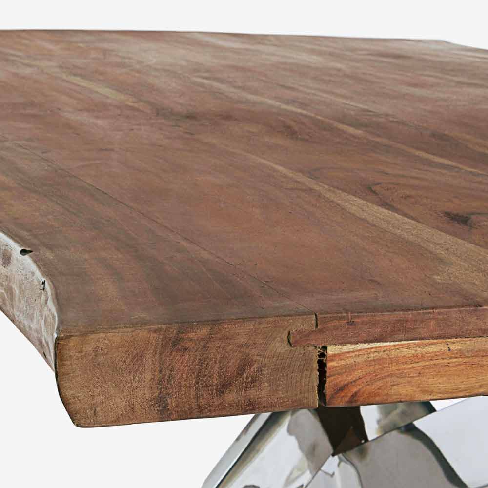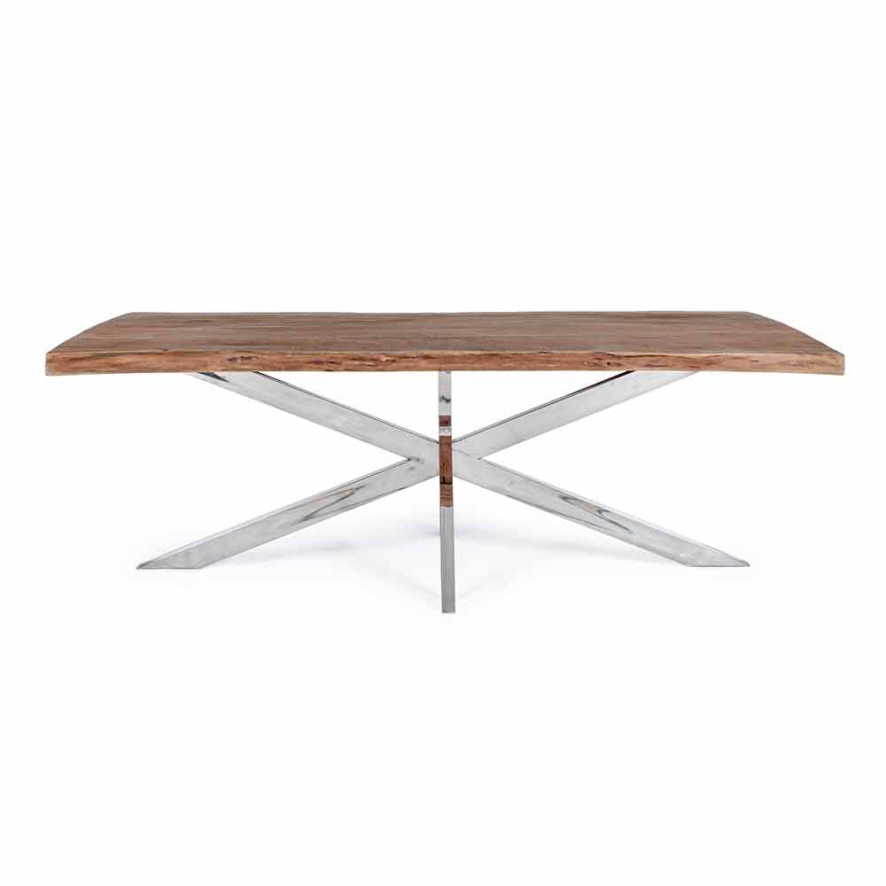 Mesa de comedor de acero inoxidable y madera Homemotion Design - Kaily