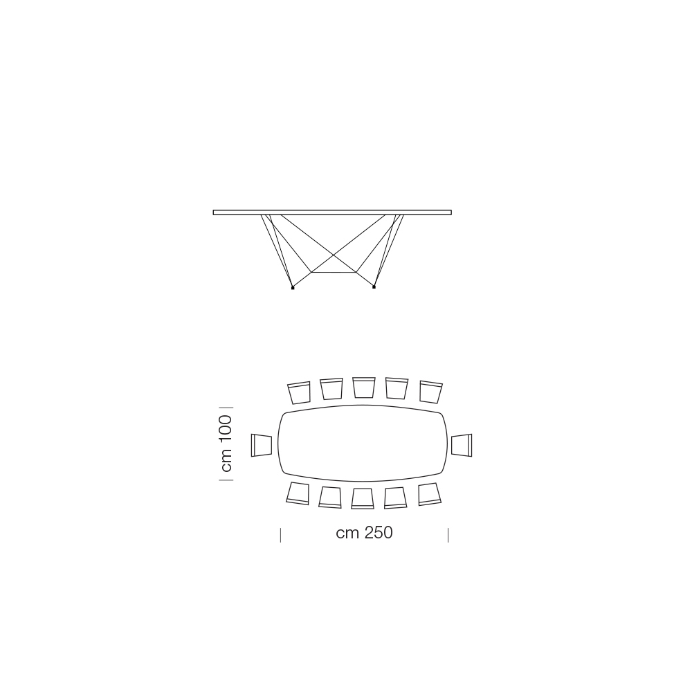 • L 250 x P 100 x Al 73,3 cm (12 asientos);
