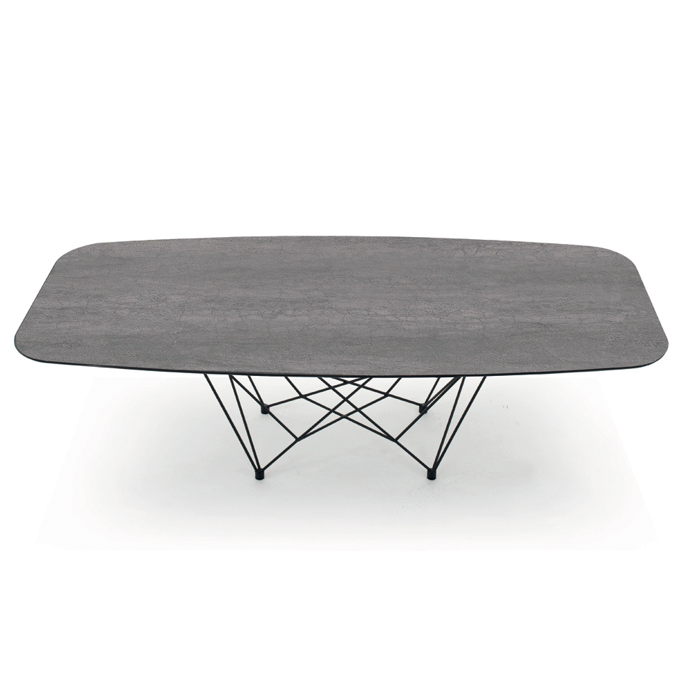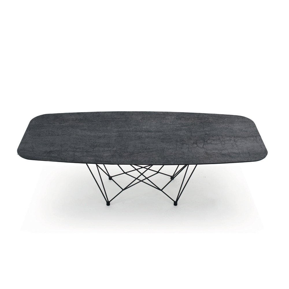 Mesa de comedor fabricada en Italia con tapa en forma de barril de cerámica laminada y base de acero pintado de negro . De la combinación perfecta entre funcionalidad y diseño surge un complemento de decoración con alma refinada capaz de completar comedores o cocinas de estilo moderno de forma exclusiva, aportando un toque revolucionario. La estética de la mesa también se enriquece con la particular forma de la base que, ofreciendo un detalle original a la estética del producto, da vida a una solución de decoración exclusiva con una fuerte personalidad contemporánea . El Laminam, además de completar con elegancia el aspecto de la mesa, es un material que presenta numerosas peculiaridades que lo convierten en una opción ideal para aportar al mismo tiempo una sólida superficie de apoyo y un diseño elegante capaz de revolucionar cualquier ambiente con personalidad.