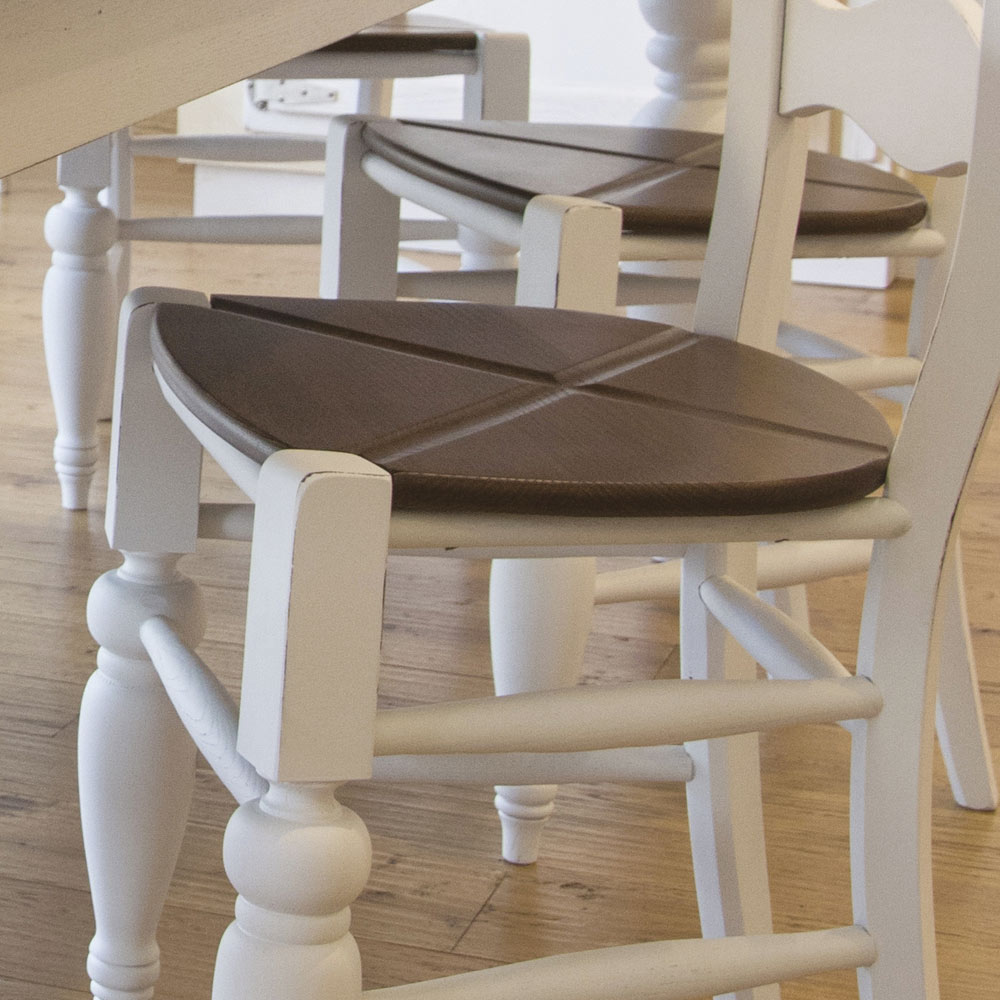 Mesa extensible para interior en fresno cepillado color hogar con esquinas perfiladas . Las patas de color espino lacado "efecto desgastado" están torneadas en madera maciza y unidas entre sí por una banda de madera maciza. El producto está íntegramente realizado en la Toscana con el uso de materiales de alta calidad y viene con 2 extensiones de 50 cm cada una que lo hacen versátil .