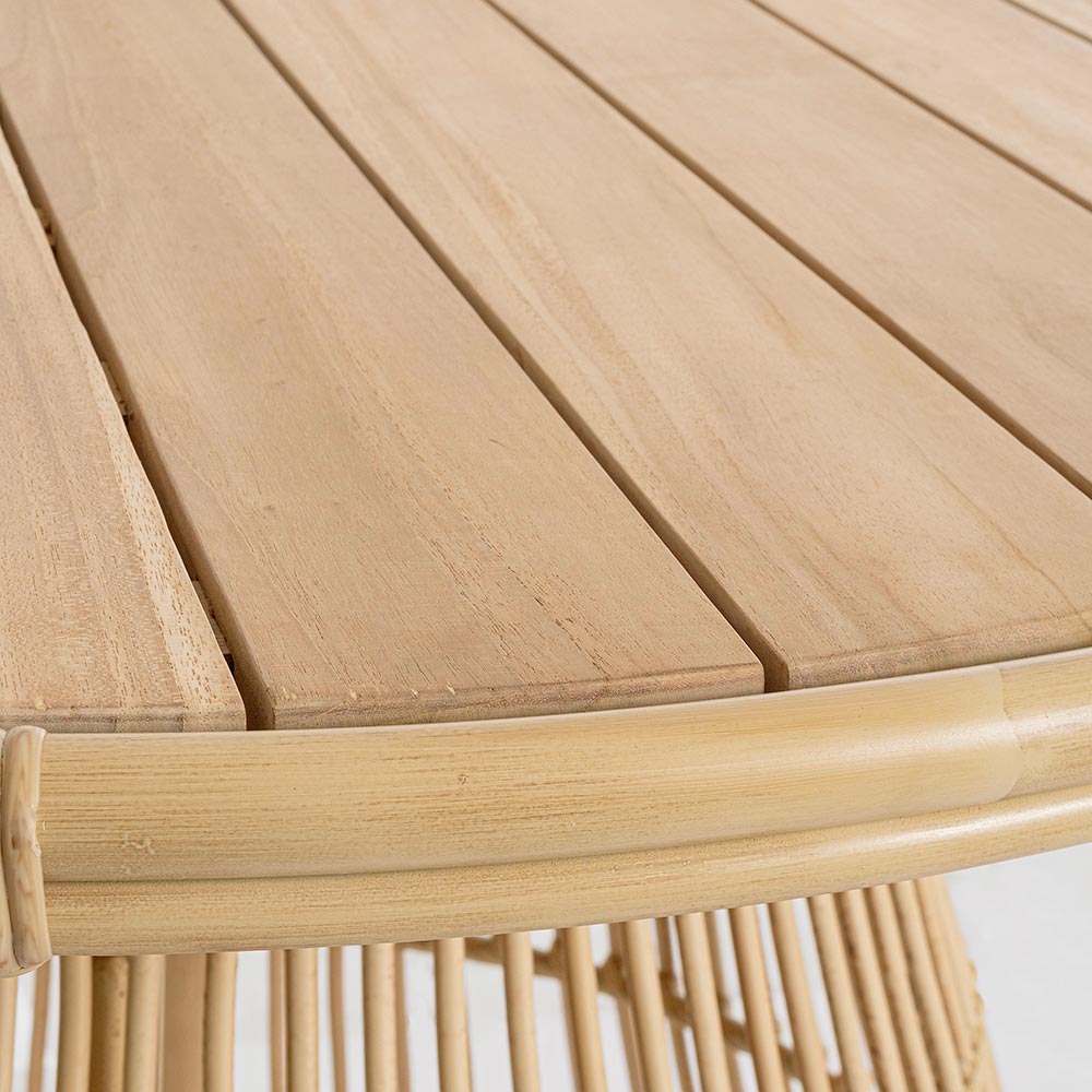 Mesa de exterior en aluminio, fibra sintética y tapa de teca.