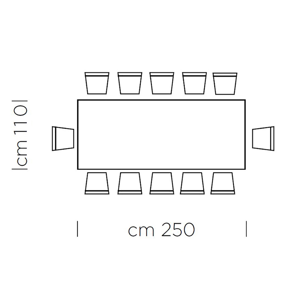 - L 250 x P 110 x Al 75,5 cm (12 asientos).
