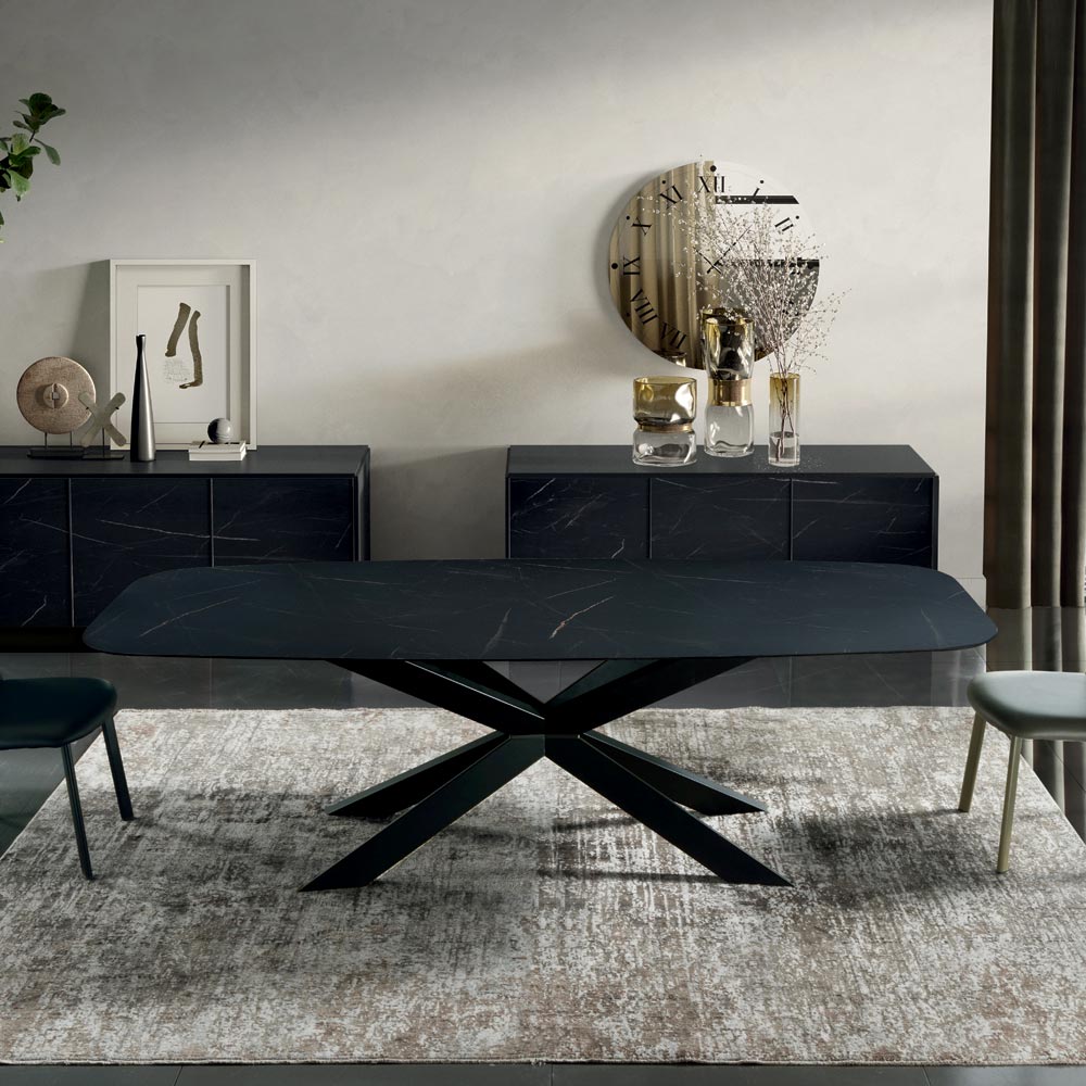 Mesa de comedor fabricada en Italia con tapa en forma de barril en
