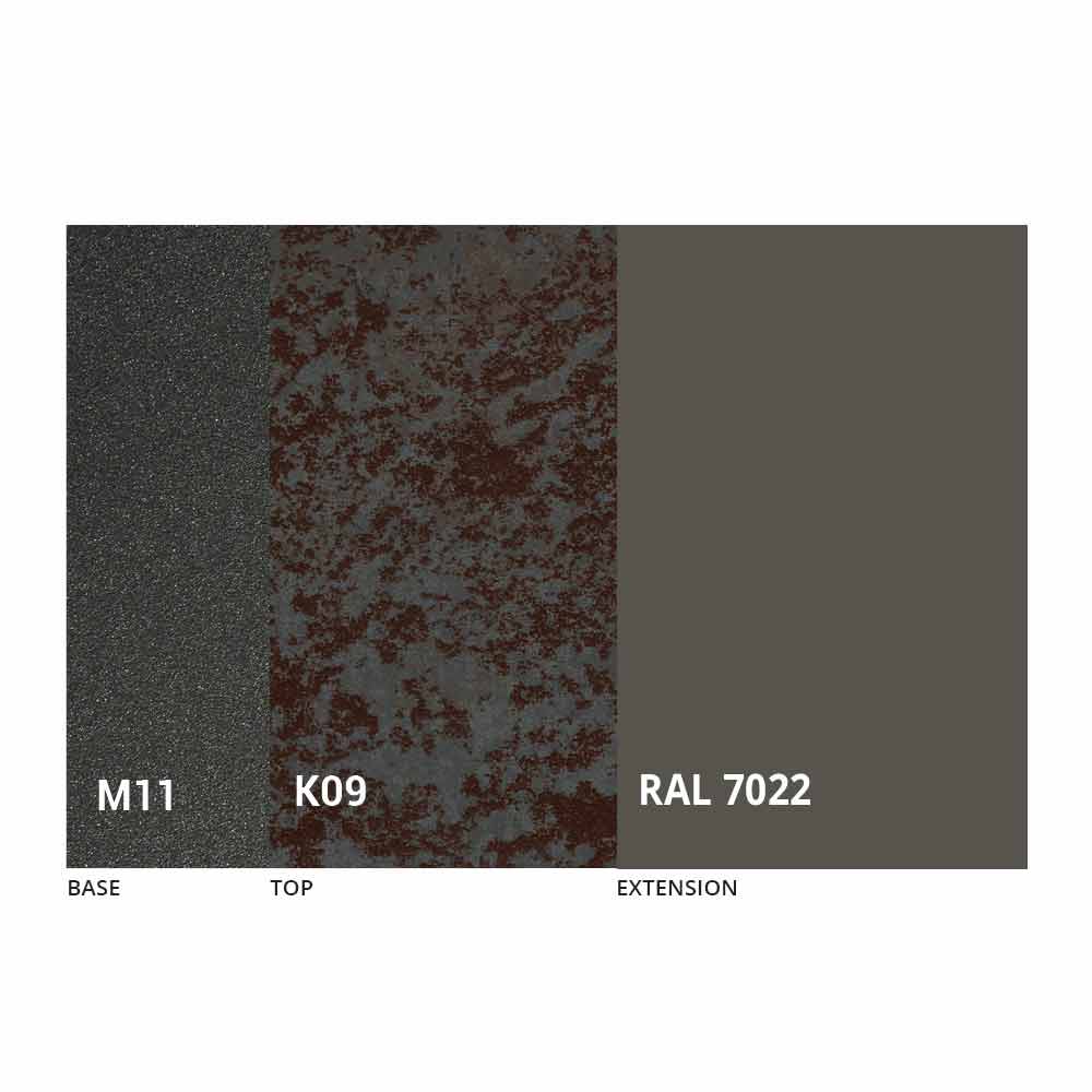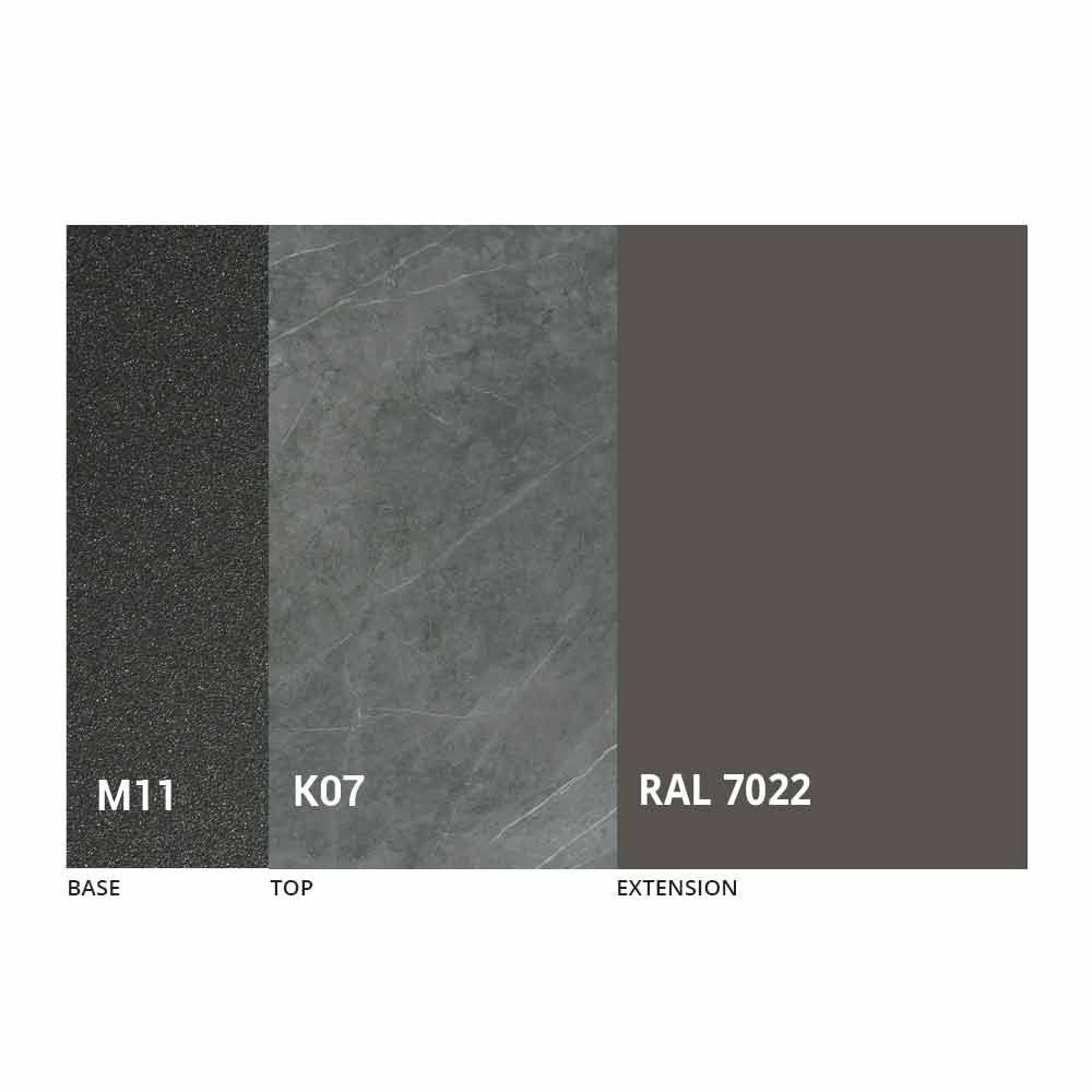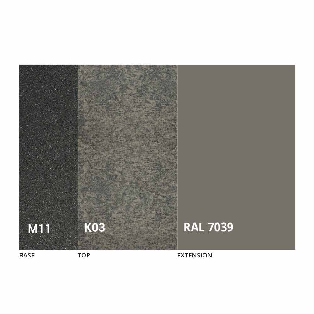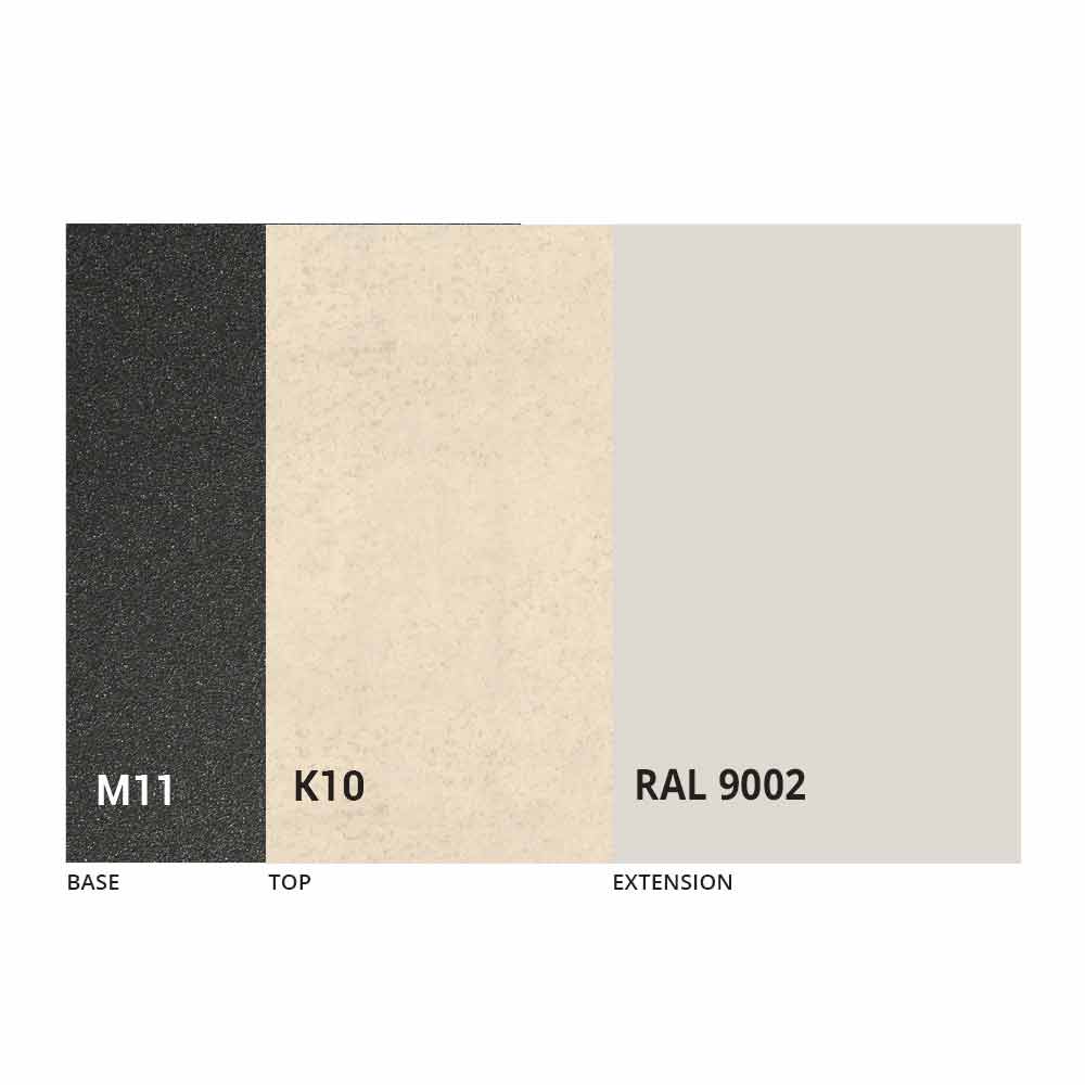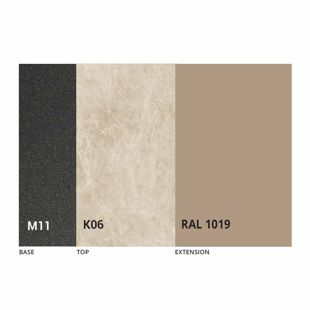 El sobre y la base de la mesa se pueden personalizar con diferentes materiales y acabados de muestra o lacado RAL. Para obtener información, póngase en contacto con nosotros mediante el formulario "