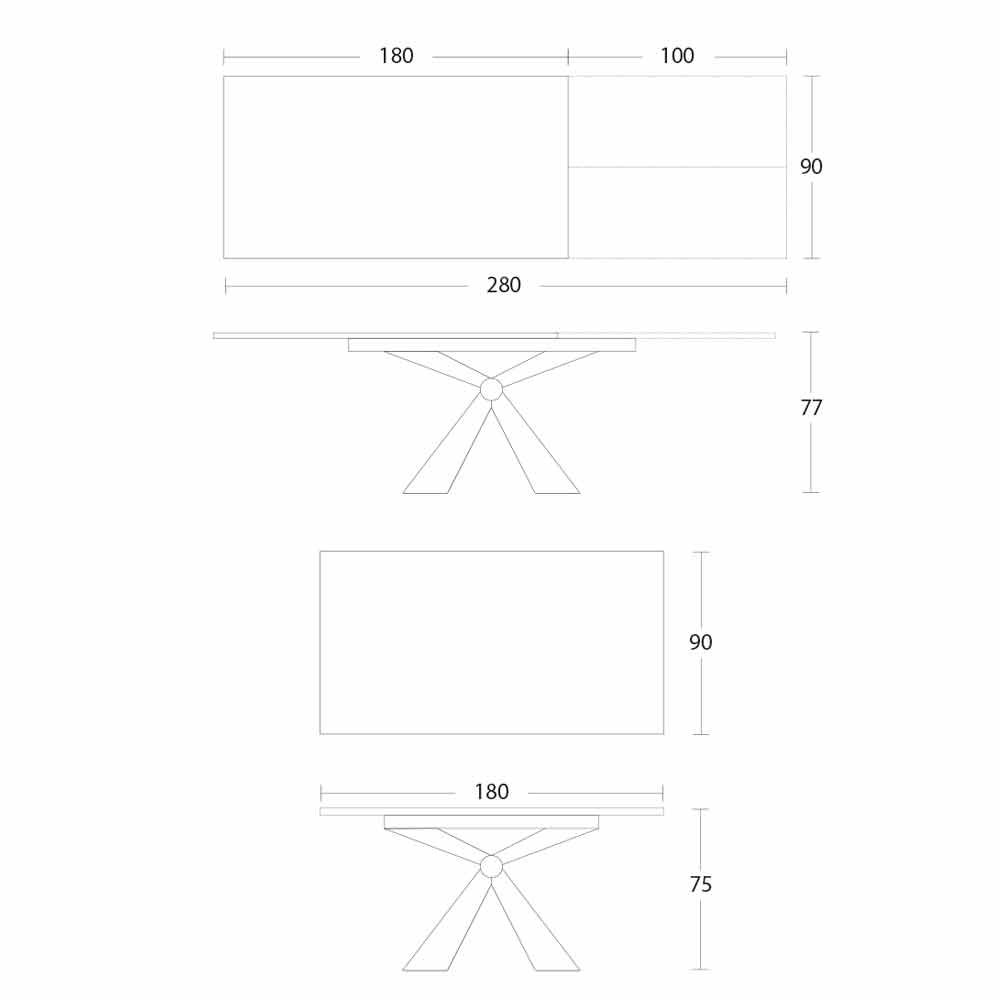 - Ancho 180-280 x Profundidad 90 x Altura 77 cm