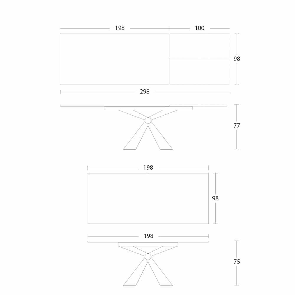 - Ancho 198-298 x profundidad 98 x altura 77 cm
